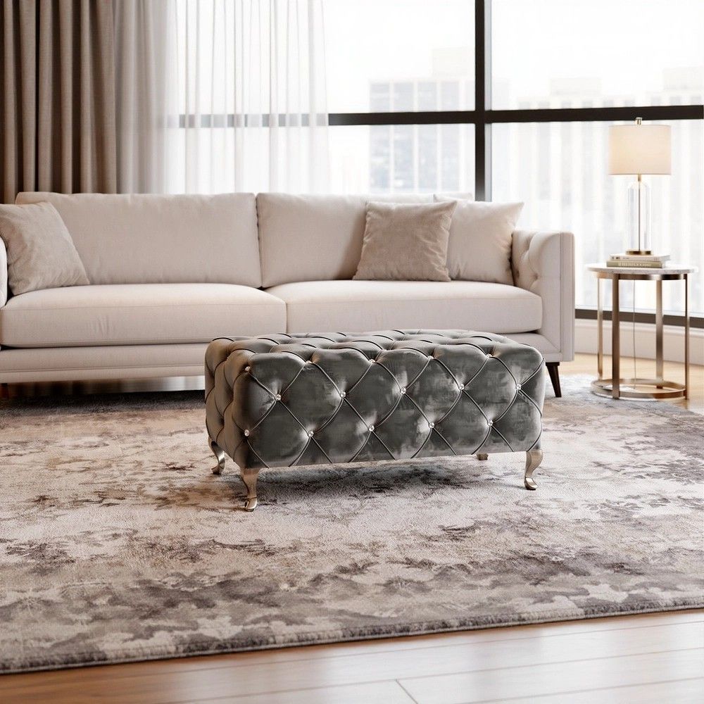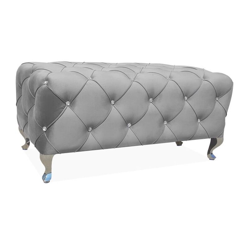 Пуф-скамья Signal HESTIA – это эффектный предмет, сочетающий в себе функциональность и ювелирную красоту. Его обивка выполнена из бархатной ткани BLUVEL 14 благородного серого цвета. Мягкий, переливающийся велюр создает атмосферу уюта и роскоши. Главная особенность – 54 кристалла-пуговицы, которые утопают в ткани, создавая изысканный, драгоценный рисунок. Они переливаются на свету, притягивая взгляды и добавляя предмету особый шарм.