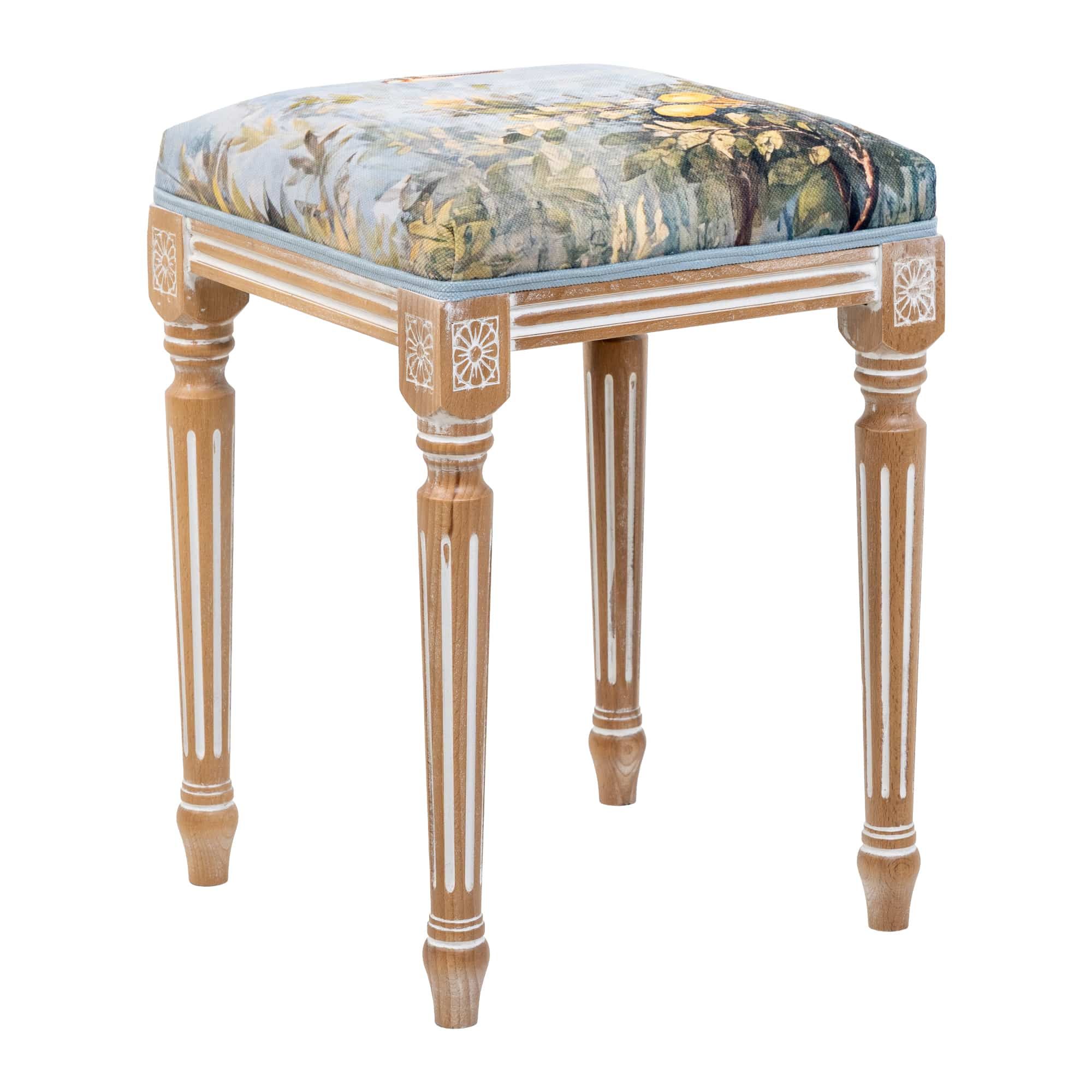 Каркас банкетки выполнен из массива бука – эталона прочности среди европейских пород дерева. Бук экологичен, долговечен и идеален для тонкой резьбы. Изящные желобки на ножках формируют классический силуэт эпохи Луи-Филиппа, придавая изделию утонченную графичность.