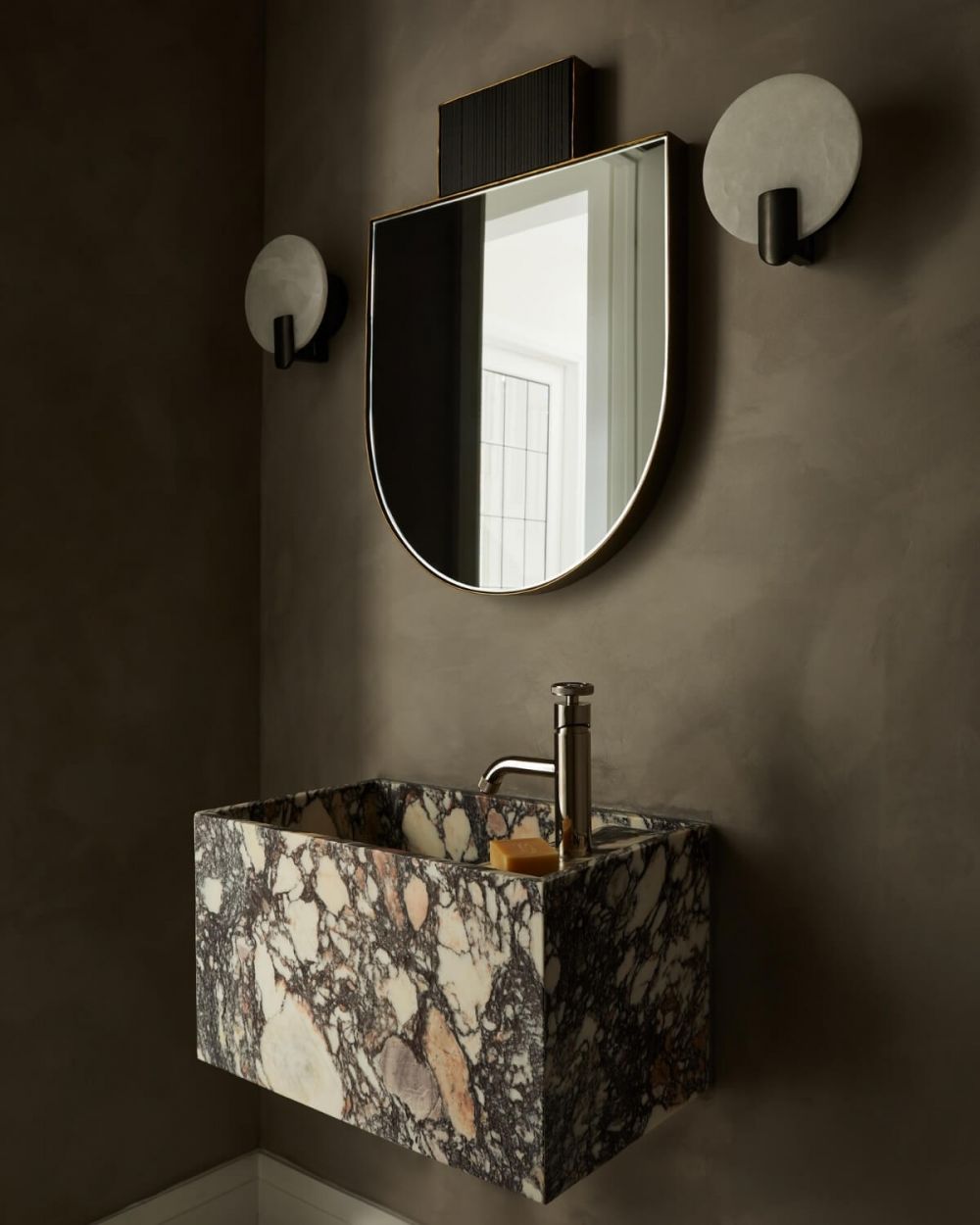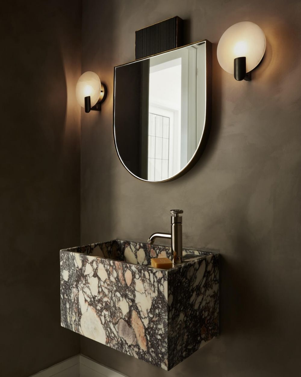 Настенный светильник «Блэкмор» решает эту задачу с минимализмом и элегантностью. Его главный элемент – круглый плафон-диск из натурального алебастра. Это природный материал, который добывают в горах. Каждый диск уникален: у него свой рисунок прожилок, своя степень прозрачности, свои вкрапления. Два одинаковых «Блэкмора» не бывает – как не бывает одинаковых камней.