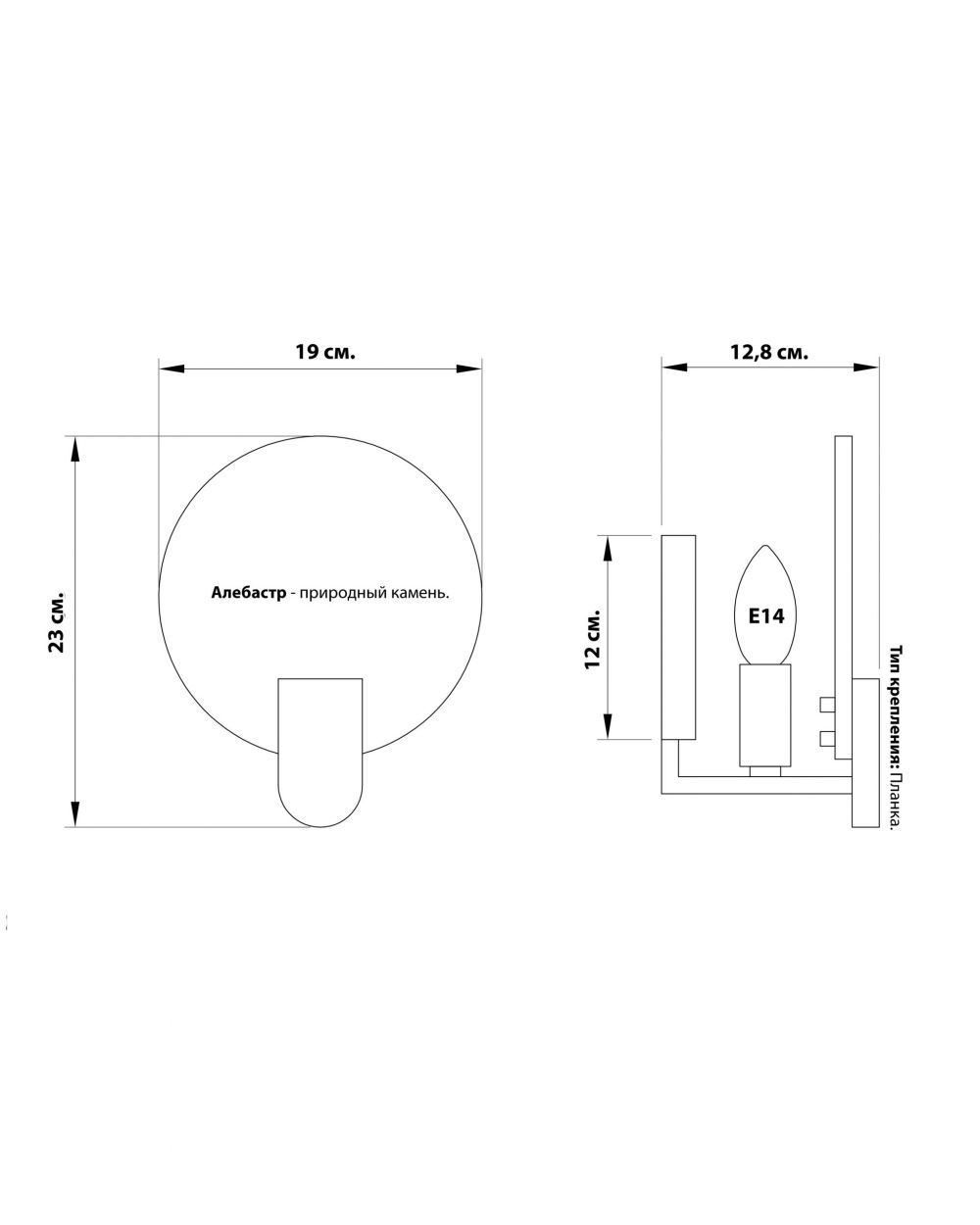 Материалы: плафон – натуральный алебастр (белый), основание – металл (черный)