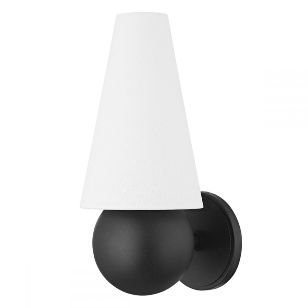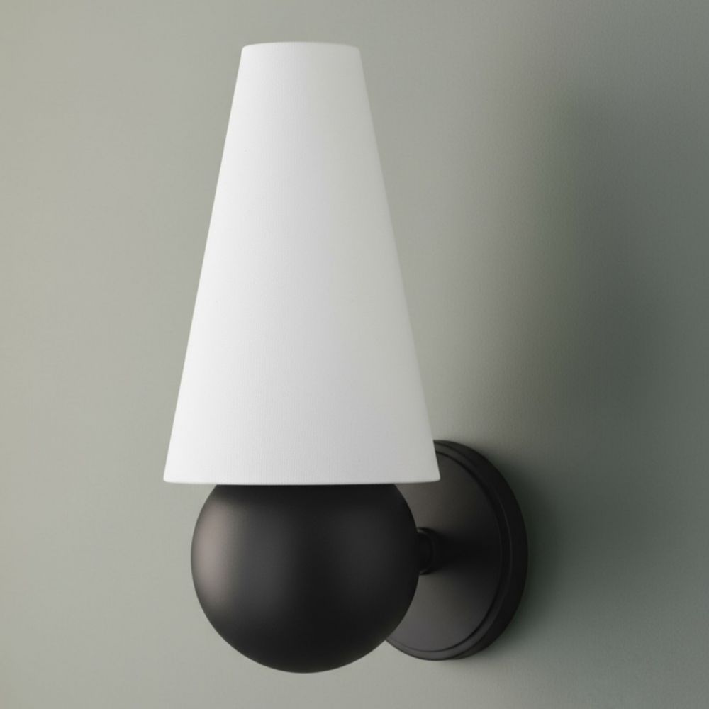 Настенный светильник «Дрю» в черном исполнении решает эту задачу с идеальным балансом. Его металлическое основание черного цвета создает четкую графическую линию на стене. Конусный абажур из натуральной льняной ткани белого цвета мягко контрастирует с черным, добавляя тепла и уюта. Это сочетание – классика, которая всегда работает: черный структурирует, белый смягчает, лен добавляет натуральности.