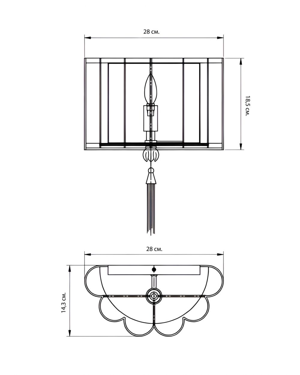 Абажур: 18,5 × 28 × 14,3 см