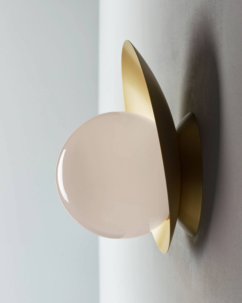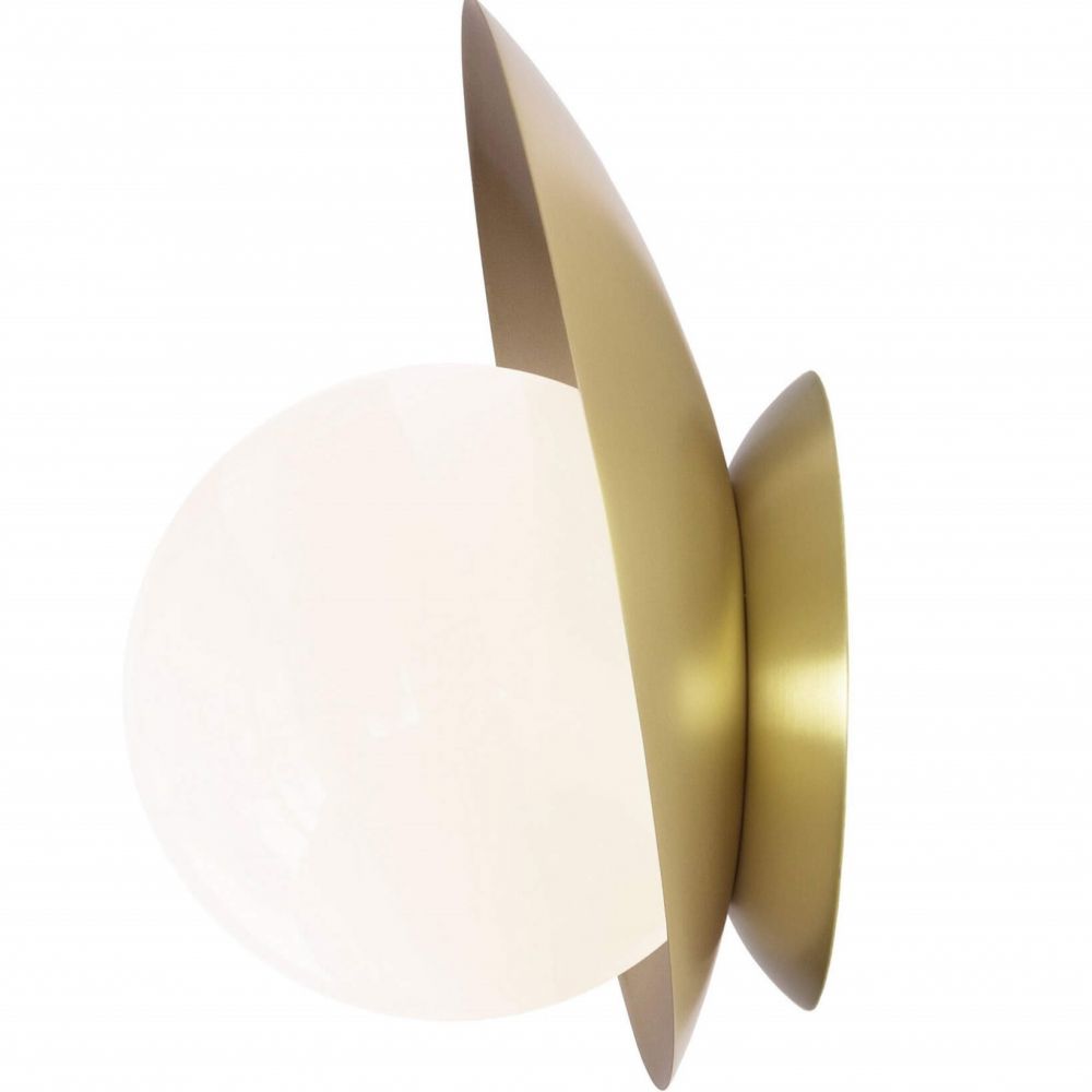 Металлическое основание с покрытием под латунь устойчиво к царапинам и не тускнеет со временем. Опаловое стекло равномерно рассеивает свет, не создавая бликов. Глубина конструкции 17,8 см обеспечивает тот самый эффект парения, но при этом светильник не выступает слишком сильно от стены. Цоколь G9 позволяет использовать компактные светодиодные лампы.