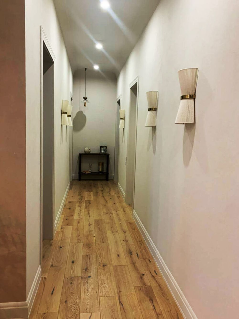 В коридоре или прихожей. Вдоль стены один или несколько светильников создадут ритмичную композицию и встретят гостей теплым, уютным светом.