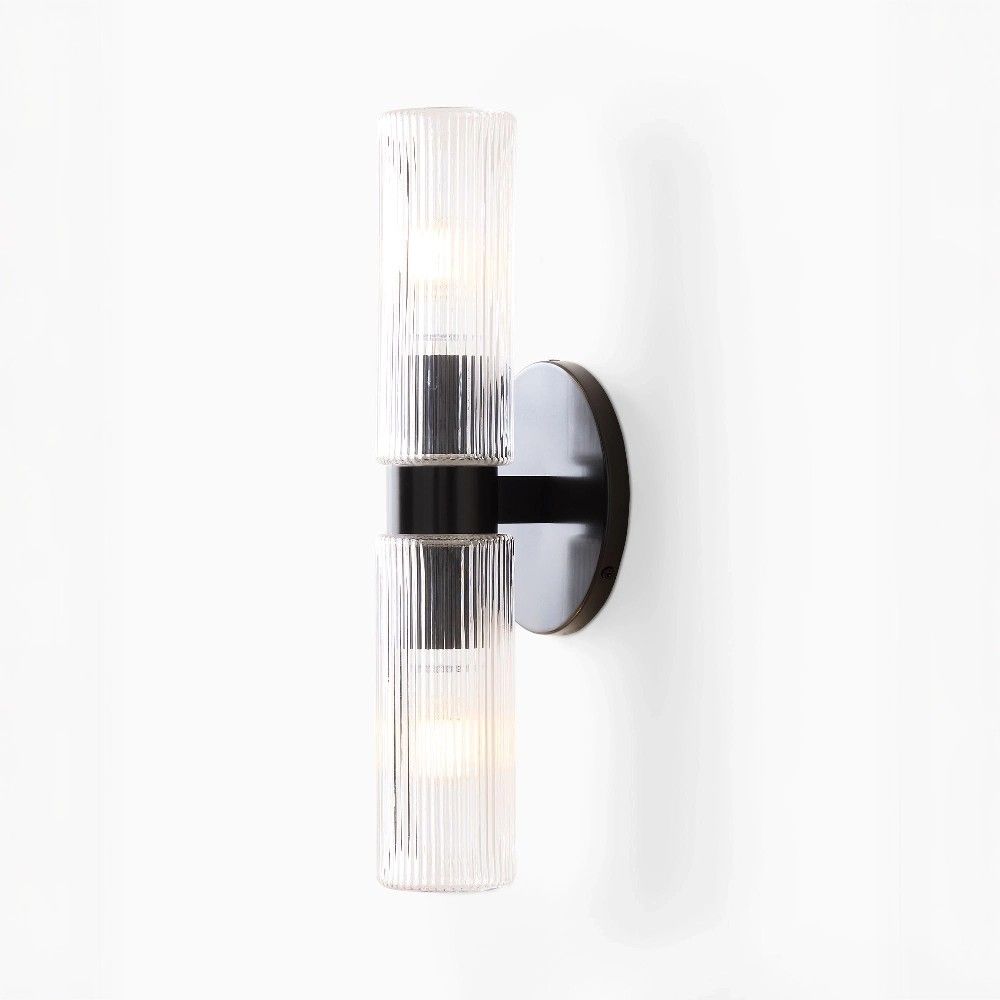 Размер 40,6 см в ширину идеально подходит для размещения над широким зеркалом, двуспальной кроватью или в просторном коридоре. Два источника света (по 40 Вт каждый) обеспечивают хорошую освещенность, а прозрачные плафоны делают свет чистым и направленным. Светильник одинаково хорошо смотрится как в одиночку, так и в композиции из нескольких.