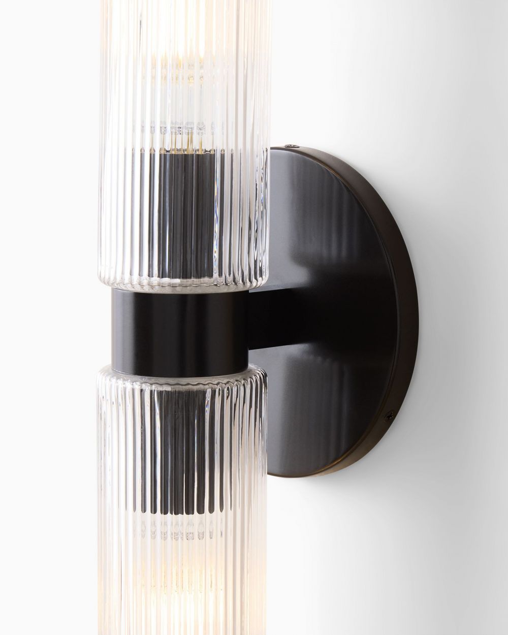 Двойное бра «Батлер» с черным основанием решает эту задачу идеально. Два прозрачных стеклянных плафона цилиндрической формы закреплены на одном компактном основании, создавая симметричную композицию. Черное гальваническое покрытие металла добавляет графичности и современного шика, а прозрачное стекло не задерживает свет, позволяя ему свободно распространяться.