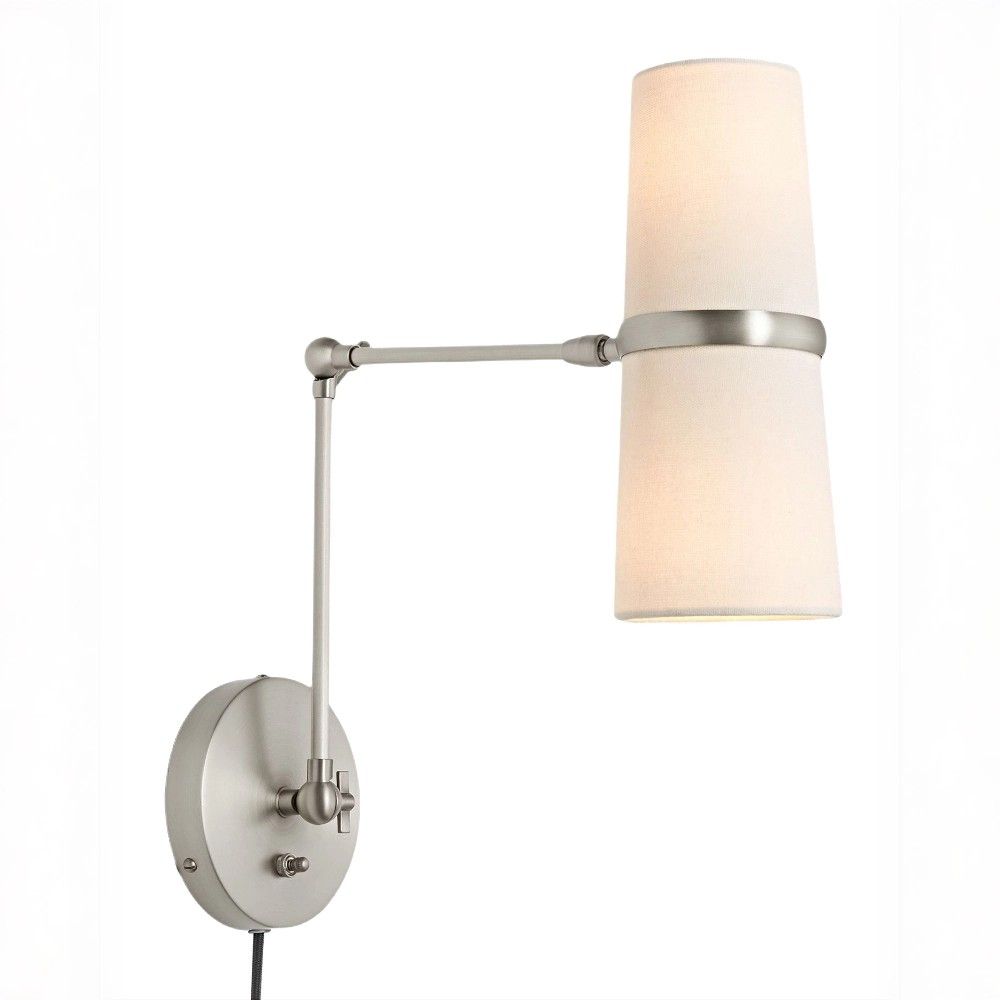 Серебряное бра «Флемиш» на раскладном шарнире решает эту задачу с редкой элегантностью. Два конусных тканевых абажура закреплены на подвижной конструкции, которая позволяет направлять свет под любым углом. Хотите читать – направьте абажуры вниз. Хотите мягкий фоновый свет – разверните их к стене или вверх. Шарнир фиксируется надежно, сохраняя заданное положение.