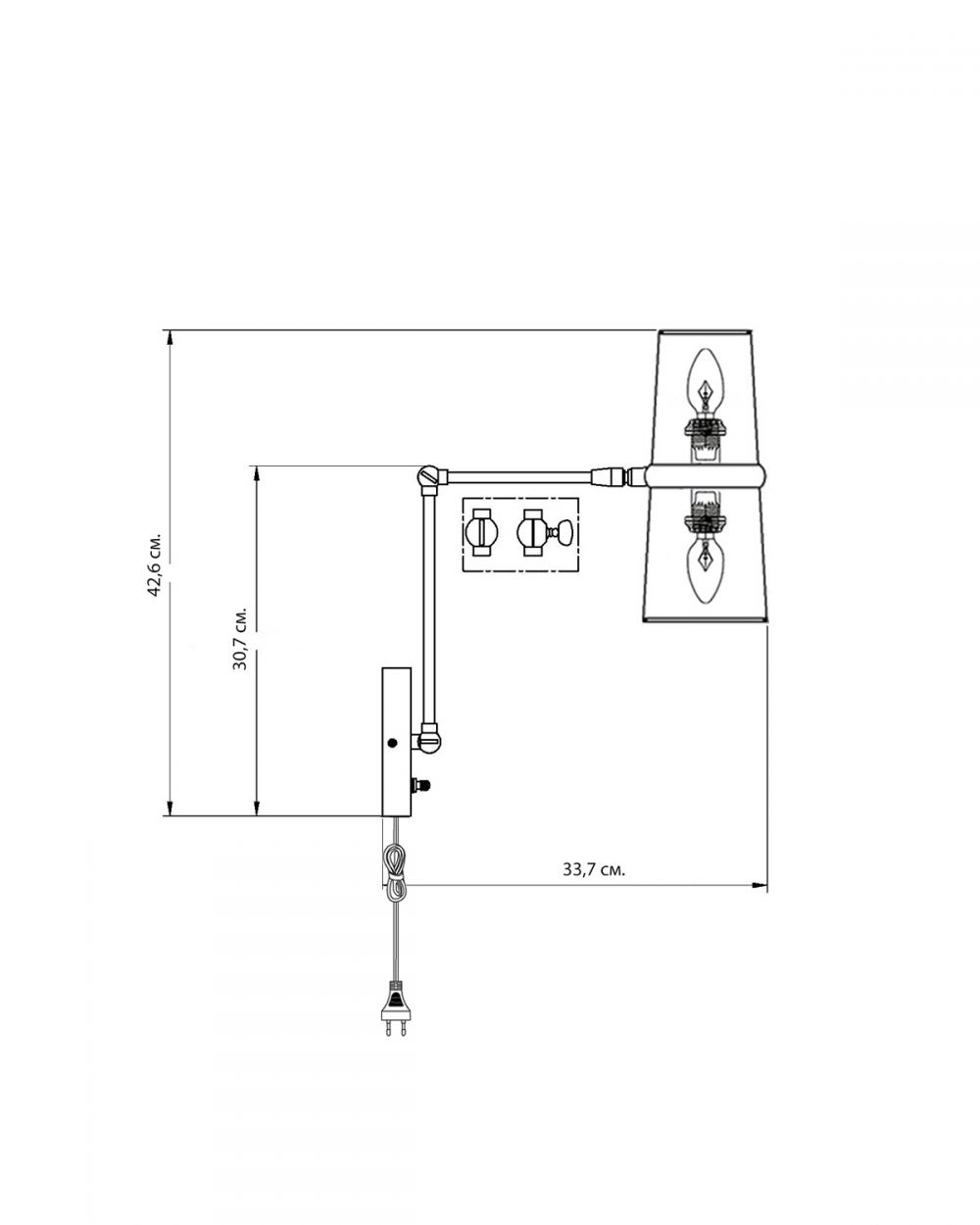 Металлический корпус с черным гальваническим покрытием устойчив к царапинам и не тускнеет. Тканевые абажуры из хлопка равномерно рассеивают свет, создавая мягкое, комфортное освещение. Подвижный шарнир надежен и выдерживает многократные изменения положения. Длинный провод в тканевой оплетке – не только стильный акцент, но и практичное решение для размещения светильника вдали от розетки. Два независимых цоколя E14 позволяют использовать любые лампочки.