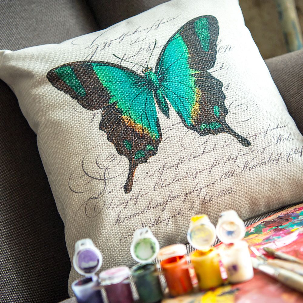 Гостеприимные мягкие подушечки с ароматными рисунками обещают создать в Вашем доме уютную романтическую атмосферу. Они в прямом смысле смягчат и оживят интерьер гостиной, спальни, холла и детской комнаты. А главное - их просто не может быть много! В Вашем распоряжении - целый баттерфляриум, наполняющий дом ласковым летним бризом и беззаботной негой.