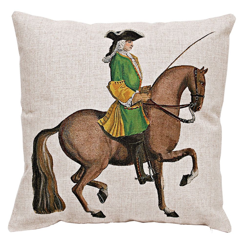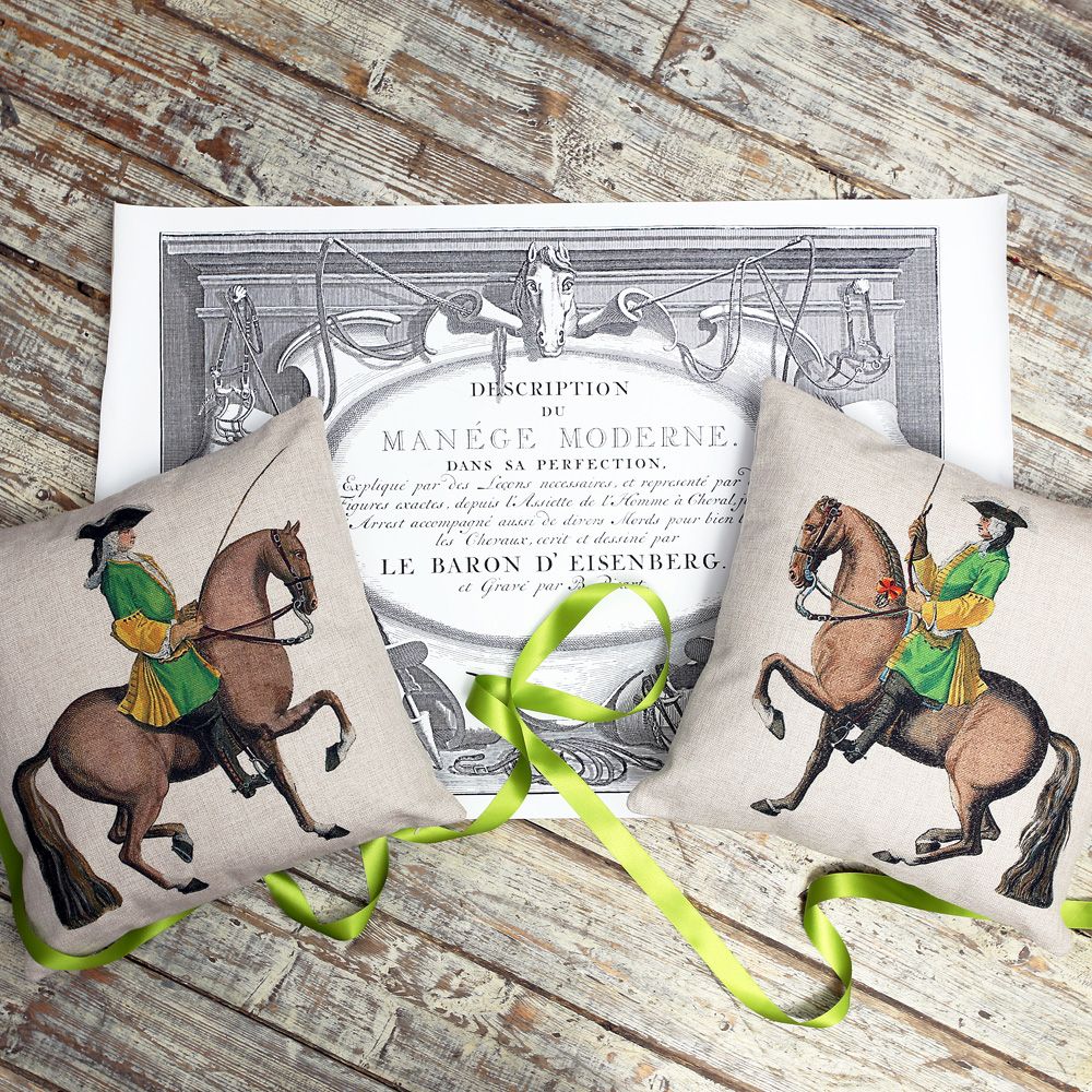 "Испанский шаг", - одно из красивейших упражнений высшей школы верховой езды, - грациозно украсило декоративную подушку "Верховая езда, Урок № 10".