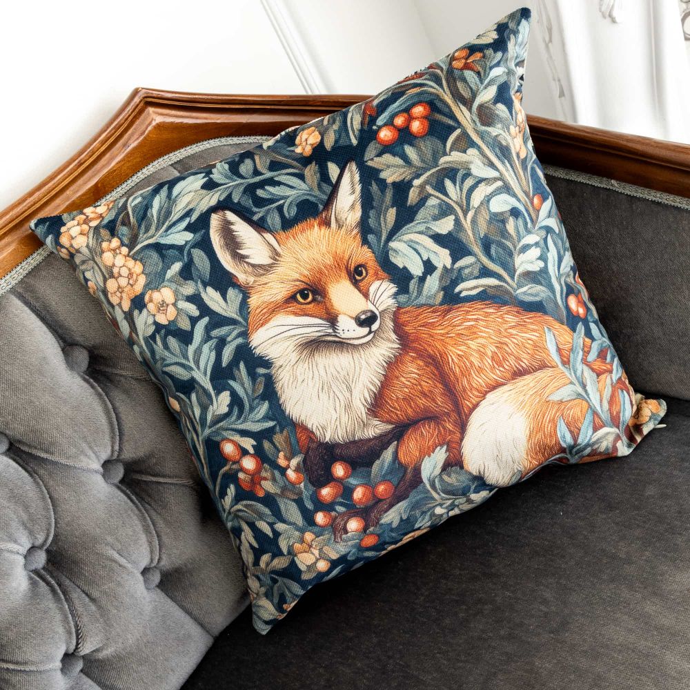 Подушка «Бал сказок. Лиса» – изысканный акцент, сочетающий в себе очарование сказки и элегантность стиля Уильяма Морриса.