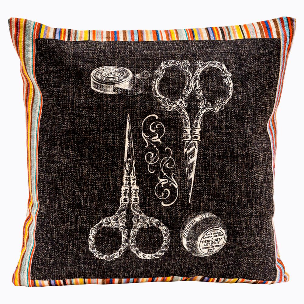 Предметы интерьера не приемлют штампов и тиражности. Почетные места доступны лишь коллекционным арт-объектам. Декоративная подушка "Волшебные ножницы Страйп" - визитная карточка интерьера "от-кутюр". Экспериментируем - смело, поражаем - с первого взгляда!