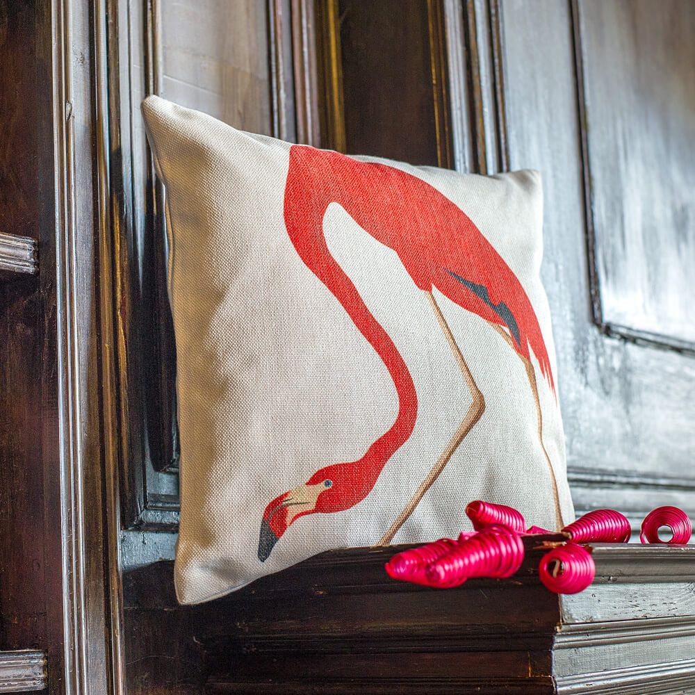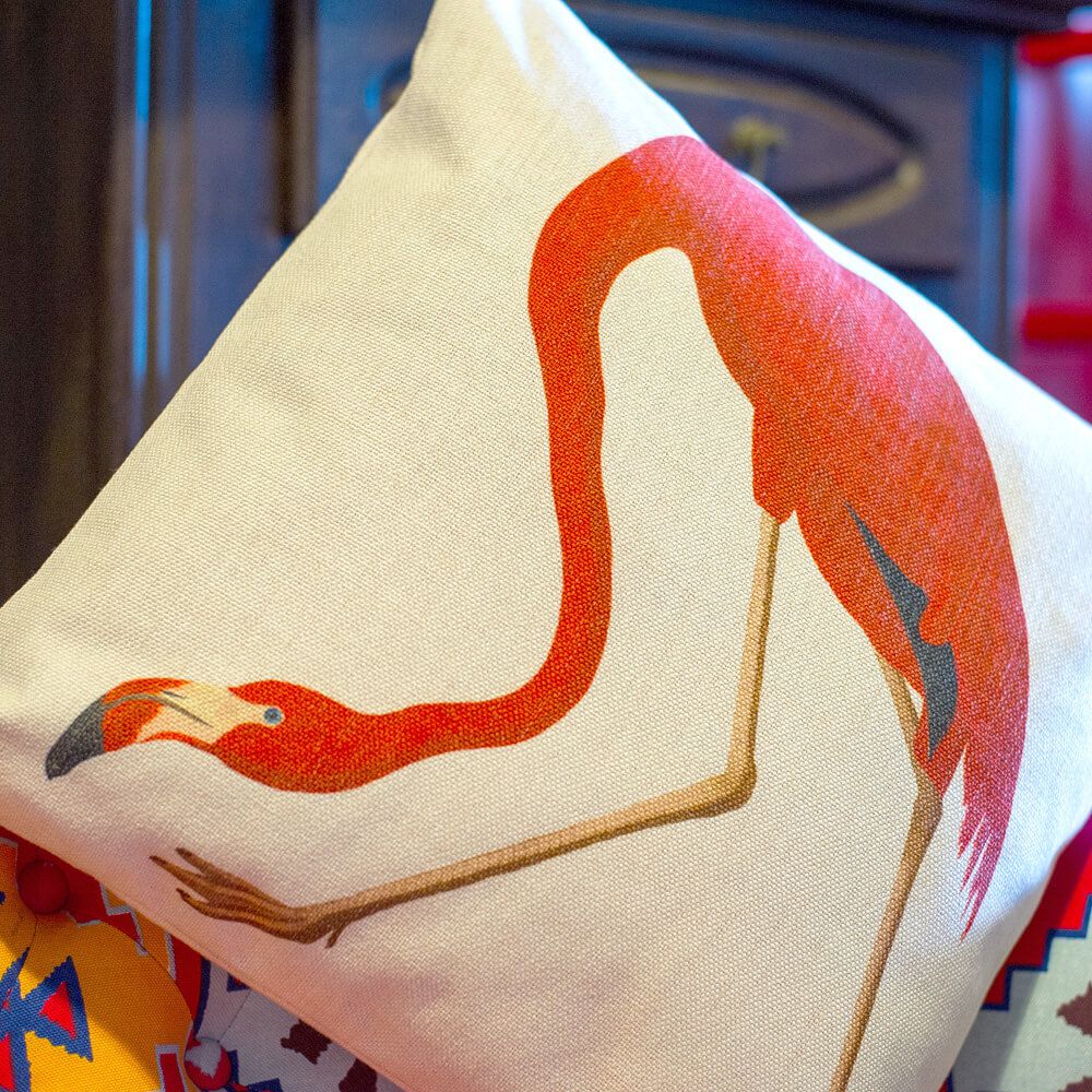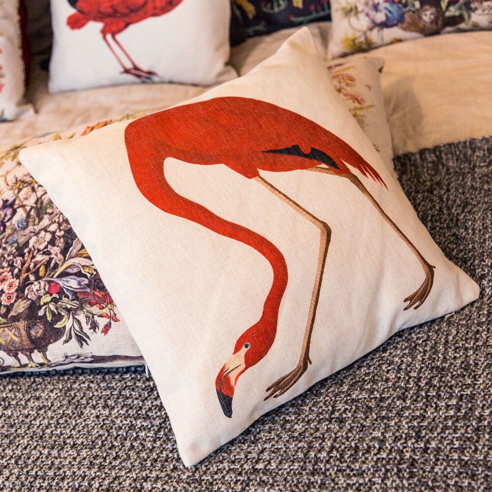 Подушка раскрашена рисунком американского художника-анималиста Джона Джеймса Одюбона (John James Audubon, 1785-1851). Это самый известная иллюстрация его четырехтомной книги «Птицы Америки», опубликованной в 1827-1838 годах.