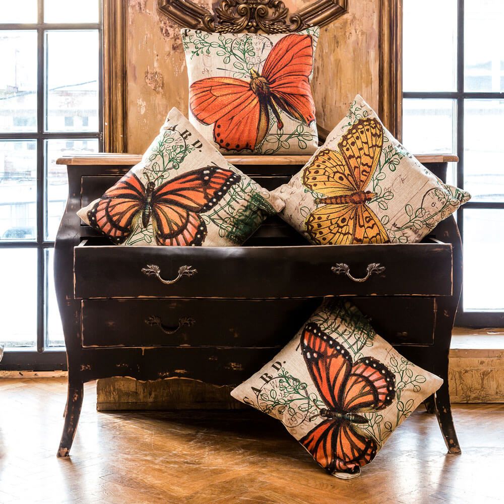 Гостеприимные мягкие подушечки со сказочными рисунками обещают создать в Вашем доме романтическую атмосферу. Они в прямом смысле смягчат и оживят интерьер гостиной, спальни, холла или кабинета. А главное - их просто не может быть много! В Вашем распоряжении - крылатая компания, наполняющая дом ласковым летним бризом и беззаботной негой.