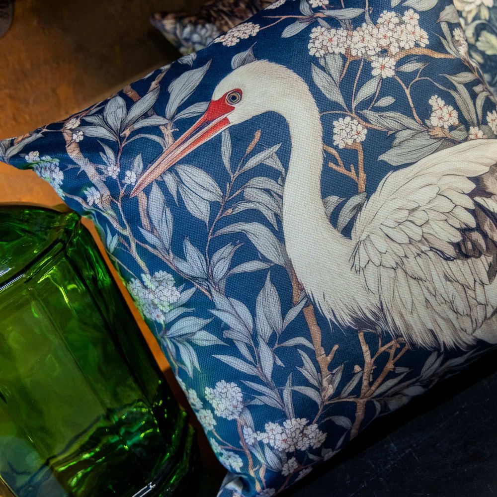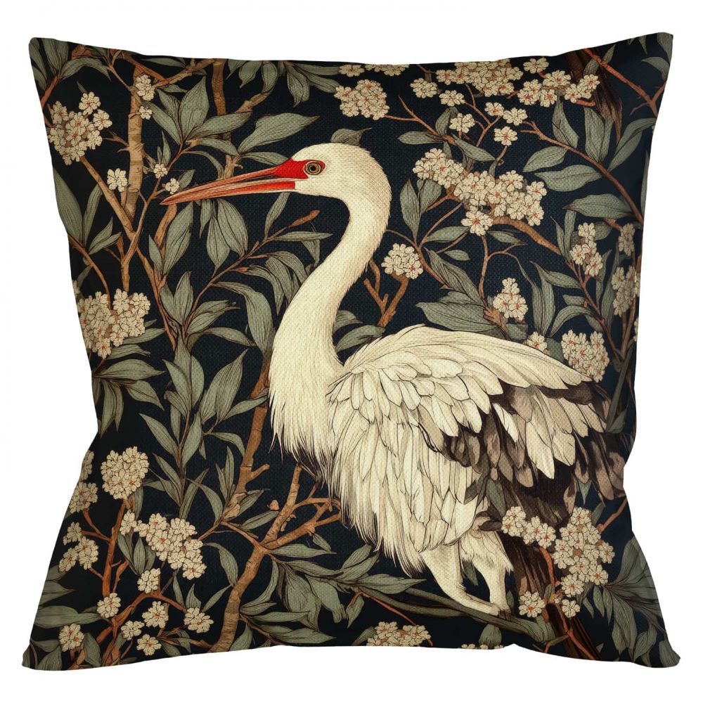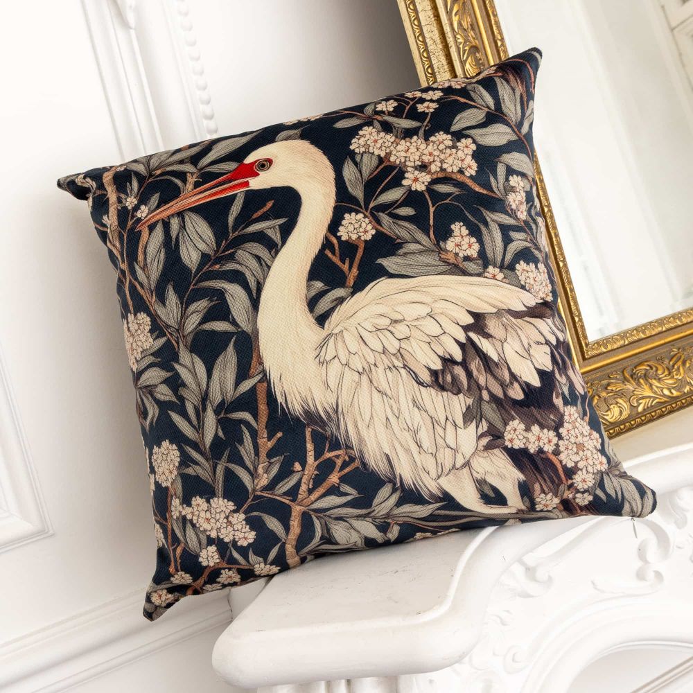 Декоративная подушка «Белая птица» с величественной цаплей украсит ваш дом аристократической элегантностью и наполнит атмосферой сказочной безмятежности.