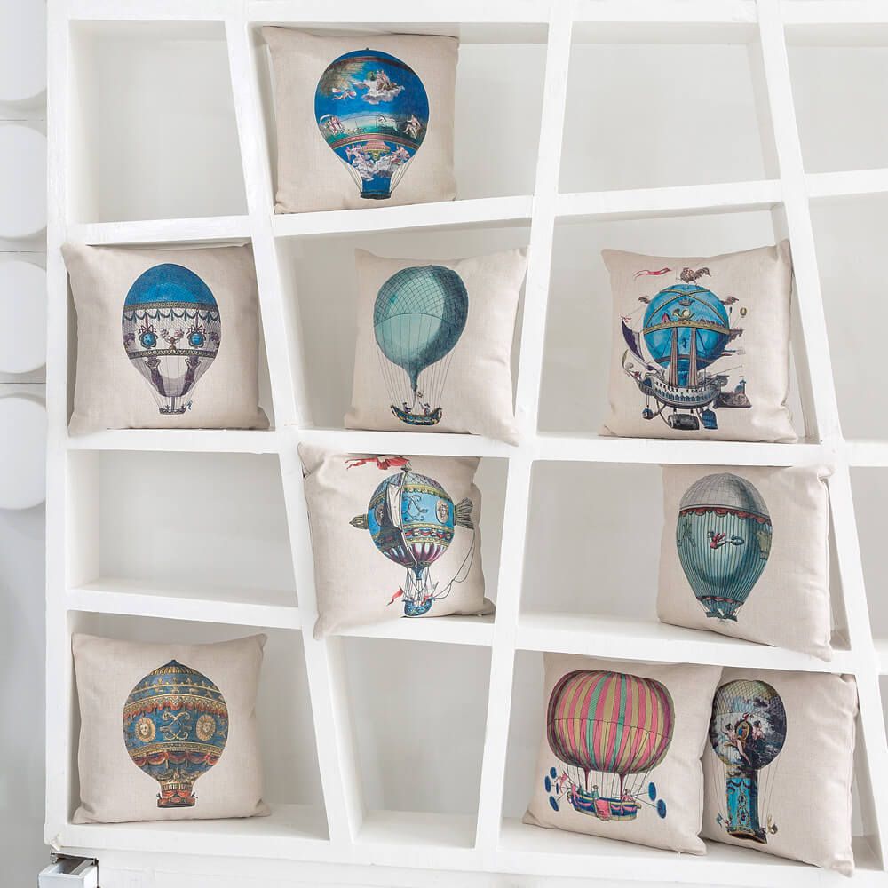 Преобразите пространство с помощью коллекционных подушек с историческими принтами воздушных шаров. Высокая плотность ткани гарантирует не только исключительную мягкость, но и долговечность вашего любимого аксессуара.