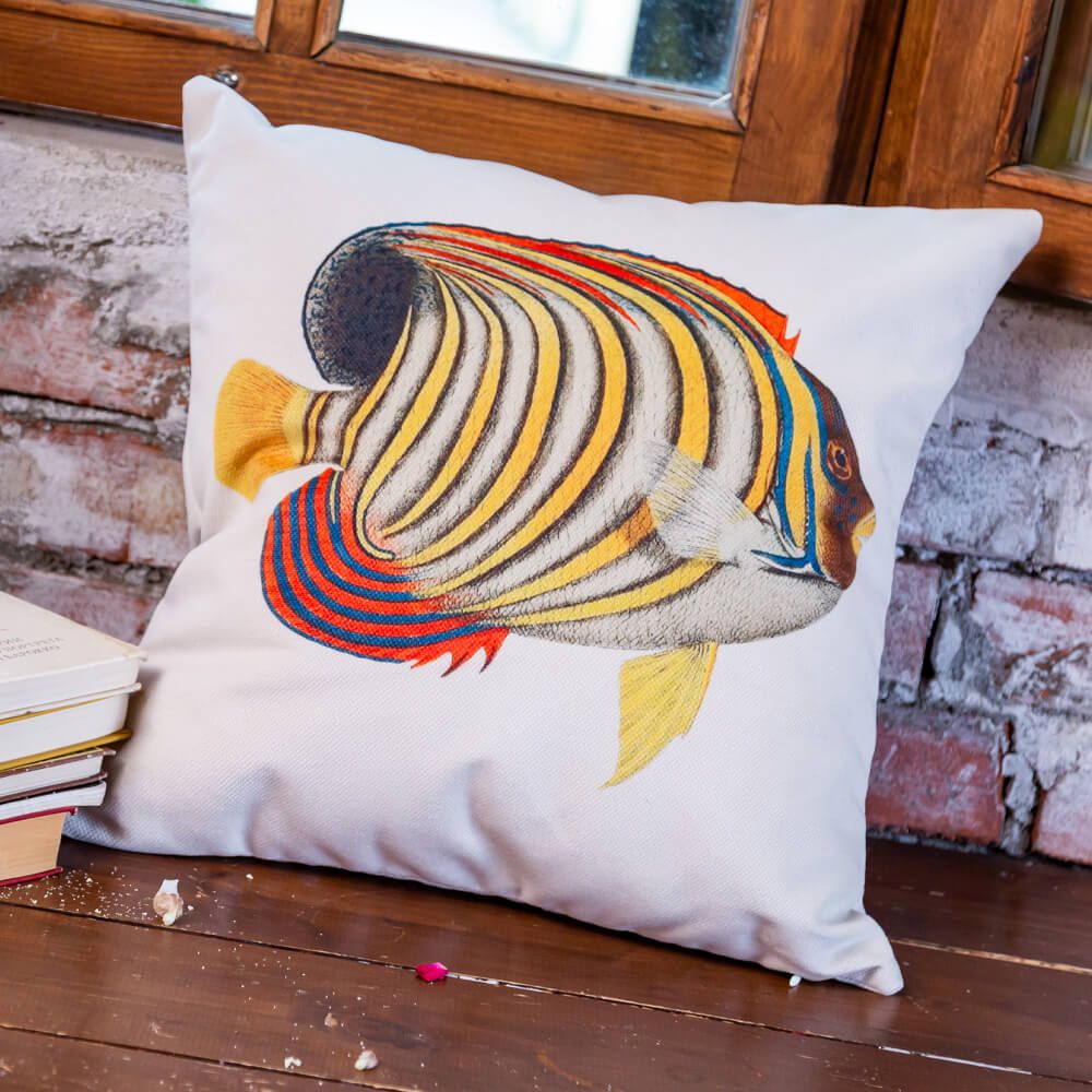 Декоративная подушка «Море волнуется-44» — это возможность обладать частичкой истории. Изображение экзотической рыбы с гравюры из музея Годдефруа 1873 года превращает этот аксессуар в интеллектуальный и стильный арт-объект. Это не просто вещь для комфорта, а предмет для разговоров, который подчеркнет ваш безупречный вкус и любовь к нестандартным решениям.