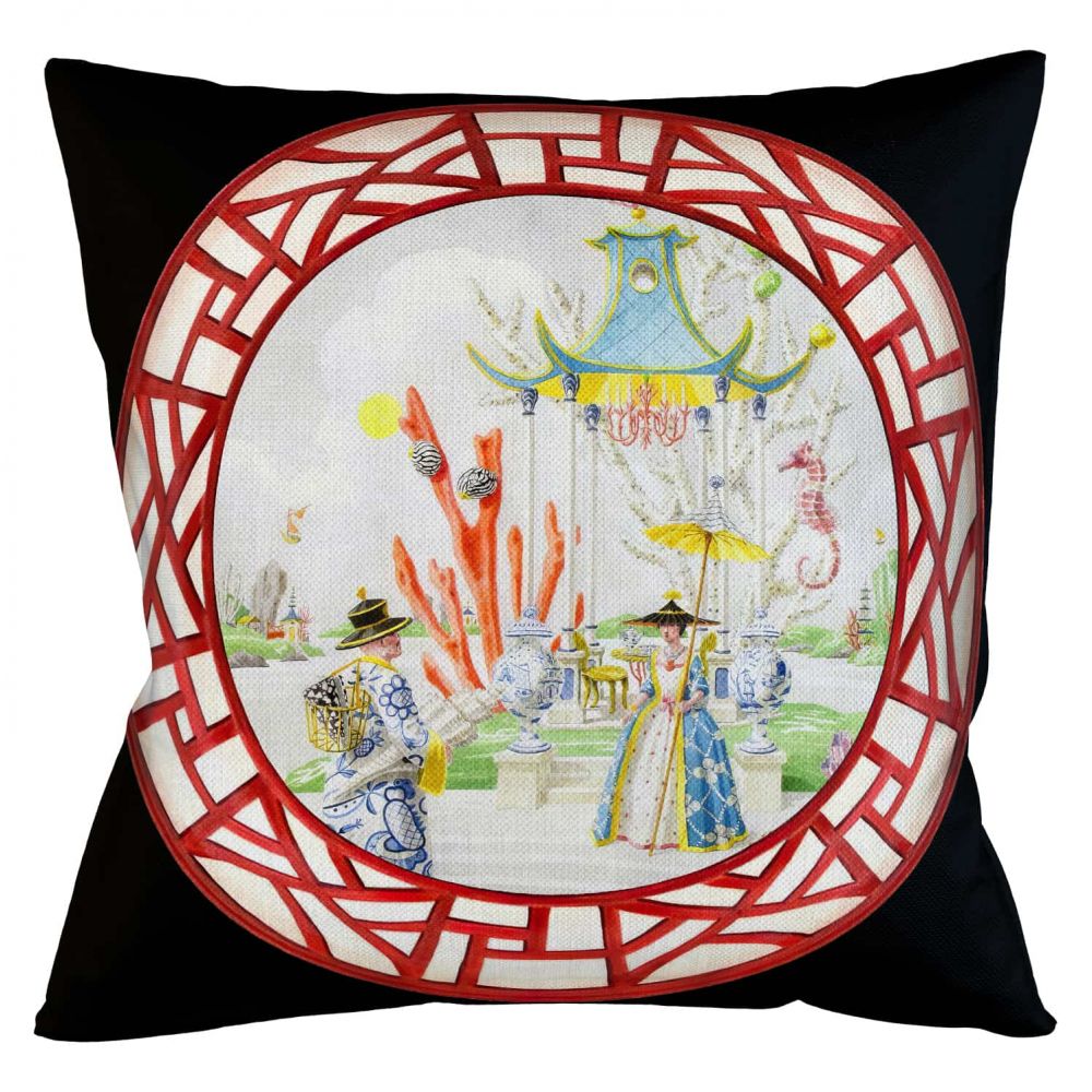 Подушка «Ориентали» — это оптическая иллюзия красоты в интерьере, созданная в уникальном стиле шинуазри. Этот стиль, представляющий собой европейскую фантазию о загадочном Востоке, идеально адаптирован для современного восприятия роскоши и экзотики. Фантастический сюжет с морским художником, разукрашивающим краба в подводном царстве, размывает границы реальности и погружает в мир сказки. Это не просто аксессуар, а самодостаточное произведение искусства, которое станет яркой и говорящей деталью в любом интерьере, добавляя ему театральности и глубины.