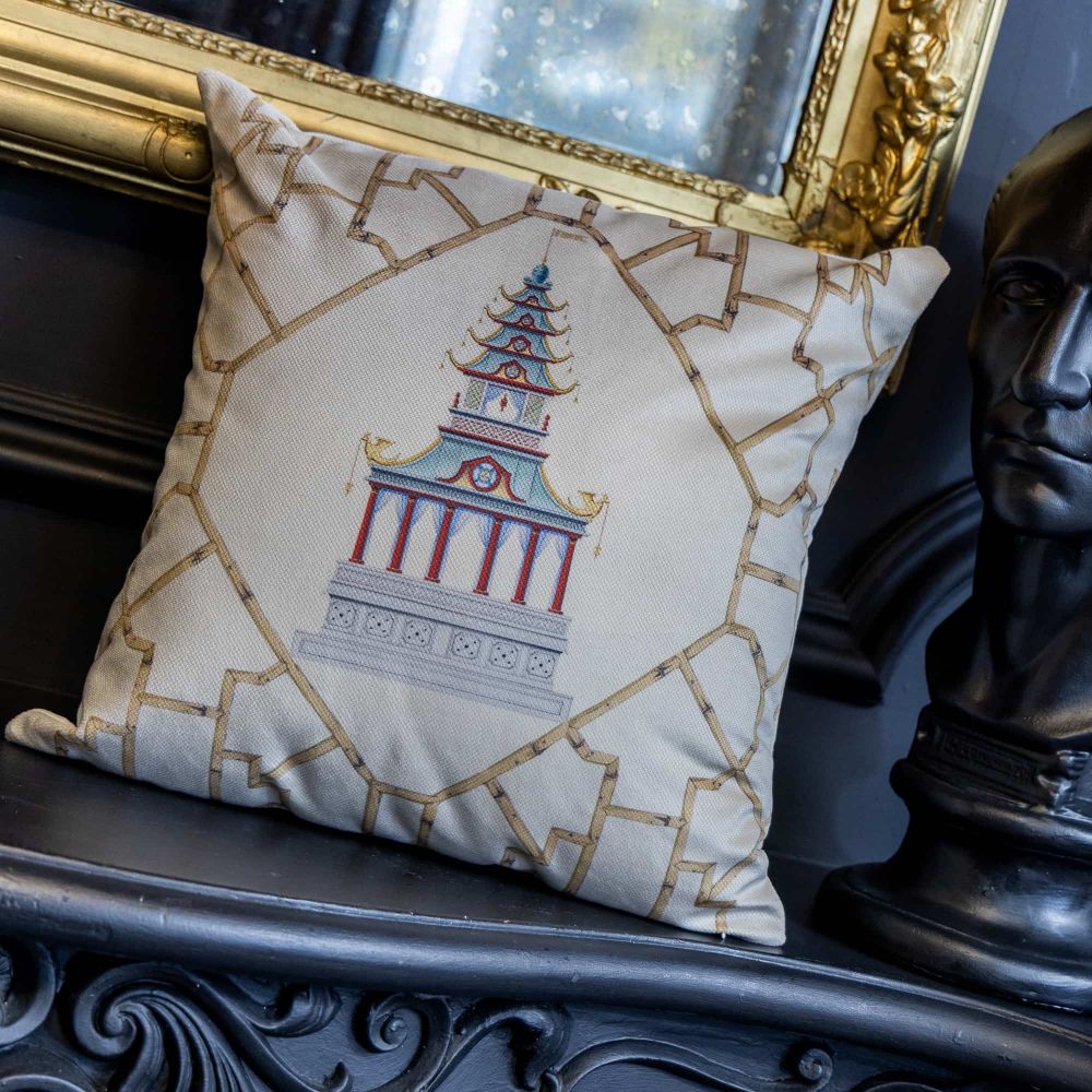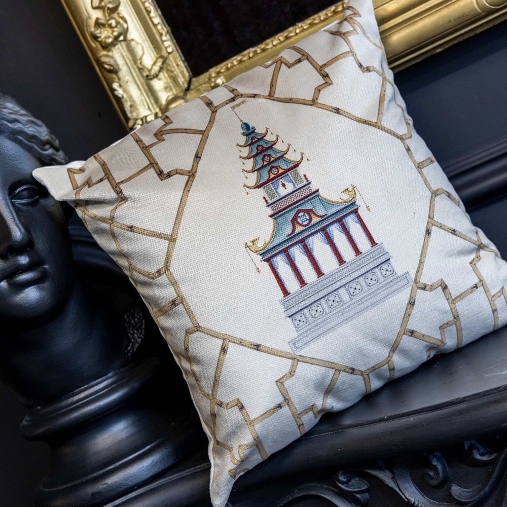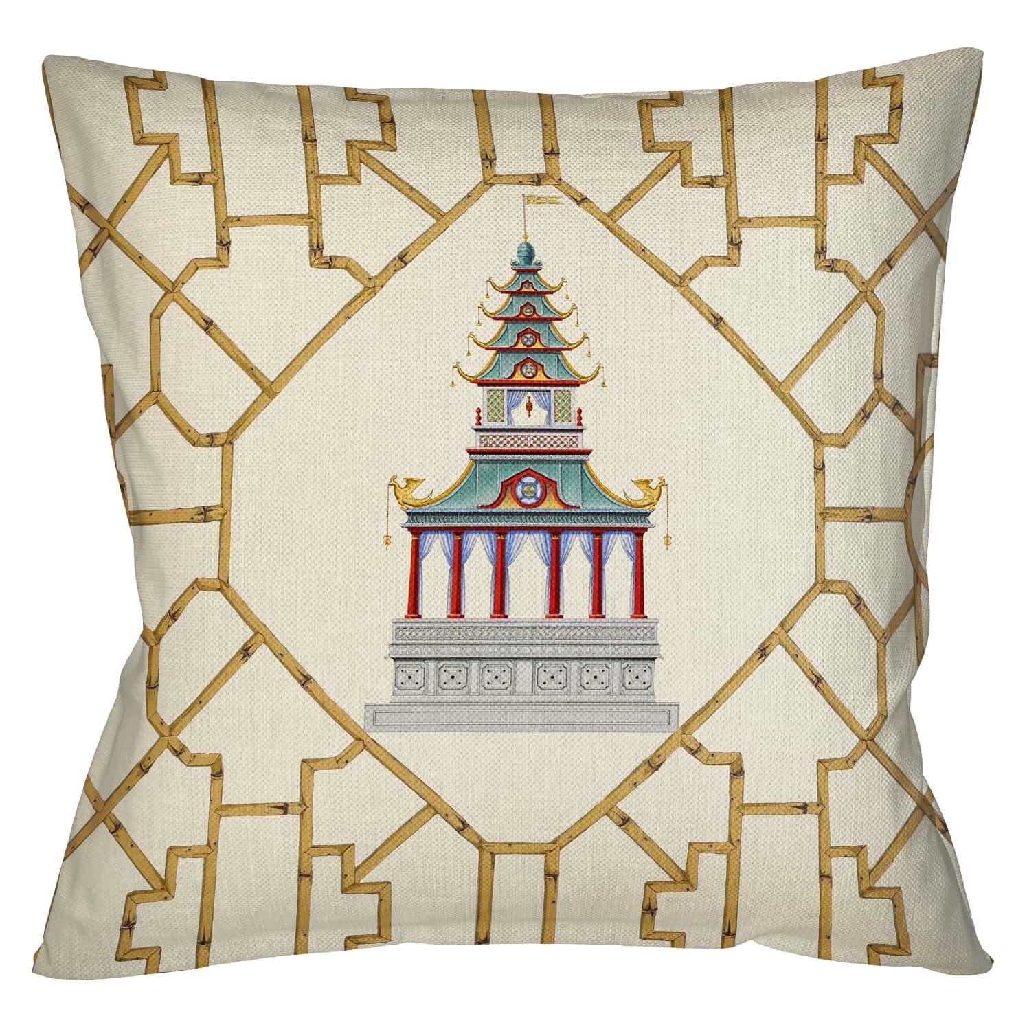 Китайская беседка, или пагода, — это больше чем архитектура. Это символ духовного восхождения, где каждый ярус означает ступень к гармонии . Подушка «Мечты о Поднебесной» версия 5 переносит этот древний символ в ваш дом. На спокойном бежевом фоне красуется детализированное изображение старинной беседки, чьи изогнутые линии крыши напоминают движение дракона — символа силы и удачи . Орнамент из стилизованных стеблей бамбука, символа стойкости и долголетия, обрамляет главный сюжет, создавая законченную художественную композицию в стиле шинуазри. Это не просто аксессуар, а предмет с глубоким смыслом, который привносит в пространство философию Востока, атмосферу безмятежности и, по поверьям, становится талисманом счастья и защиты для дома .