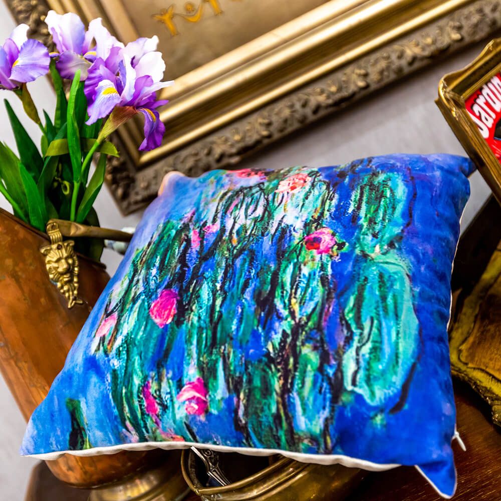 Легкость импрессионизма: Подушка растворяет в интерьере характерную для этого стиля воздушность, добавляя пространству света и позитива. Это готовый цветовой и смысловой акцент.