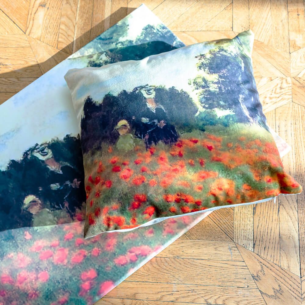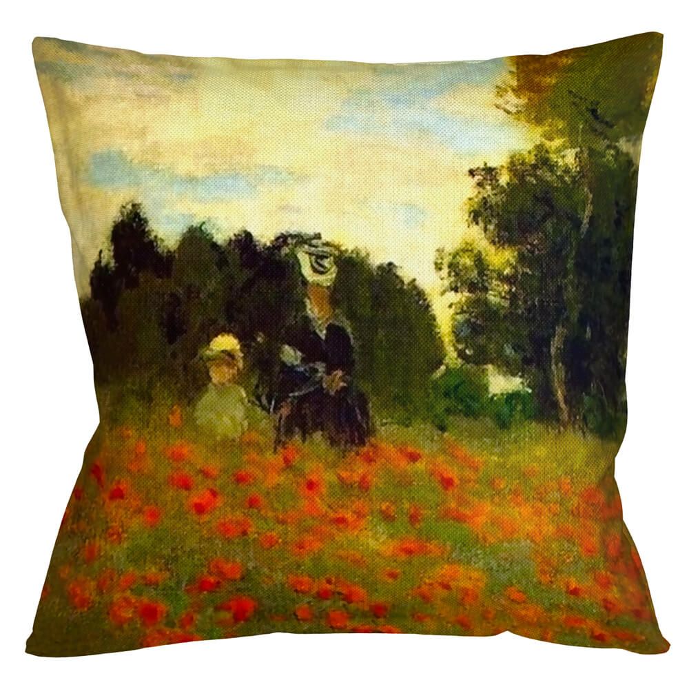 Это не просто красивая картинка. На вашей подушке — репродукция работы, которая в 1874 году произвела фурор и до сих пор остается одной из самых узнаваемых картин Клода Моне . Мазки Моне, его дерзкое решение изобразить не статичный пейзаж, а само впечатление от солнечного дня, легли в основу целого художественного направления. Сочные красные пятна маков, воздушная зелень и бездонная синева неба — эта работа олицетворяет лето, свободу и радость жизни.