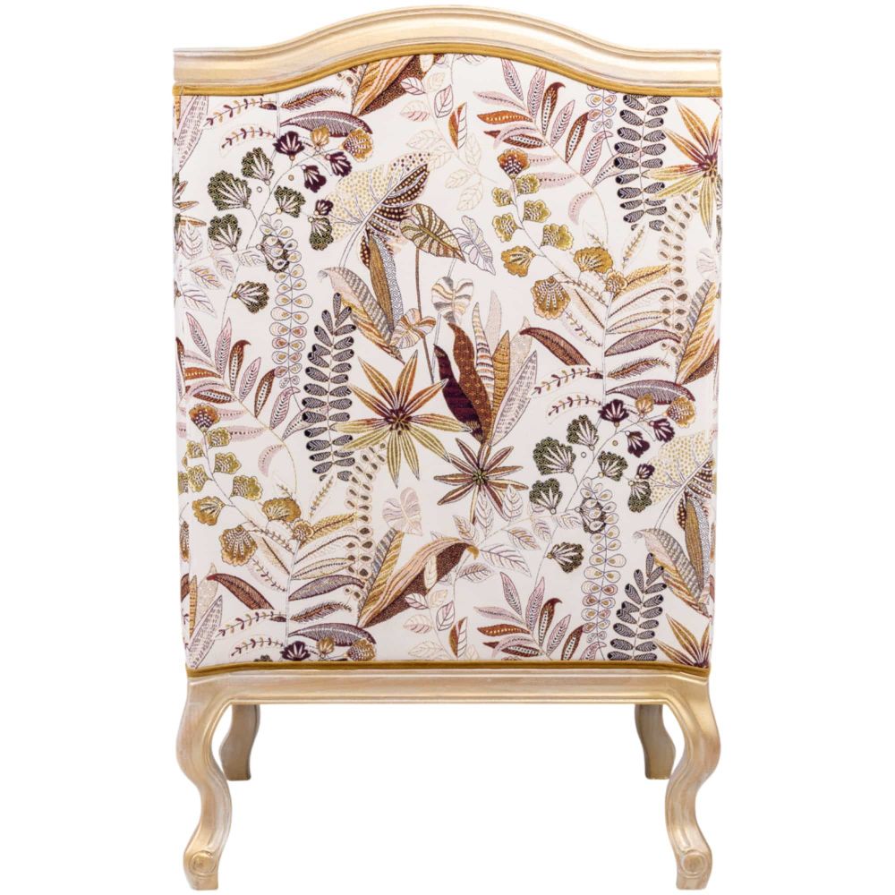 Кресло «Гербарий» – это гармоничное сочетание удобства и красоты, где мягкая гипоаллергенная микровелюровая обивка декорирована растительным узором, словно засушенные листья в гербарии. Изысканный каркас ручной работы, выполненный из массива бука в духе эпохи Луи Филиппа, завершает облик плавным изгибом ножек.