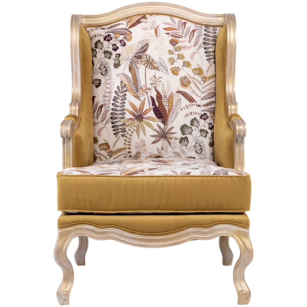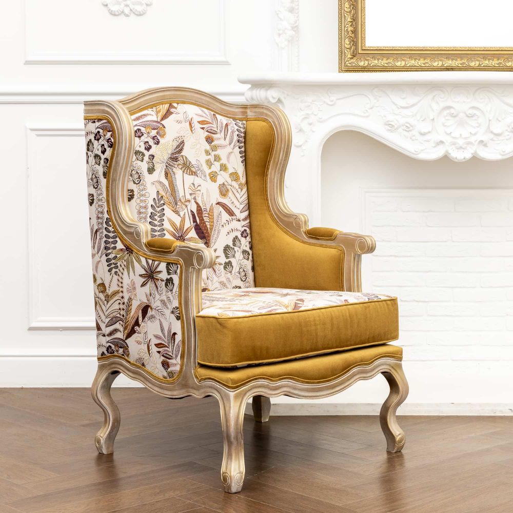 Буковый каркас кресла, чуть тронутый золотистой патиной, наделяет этот мебельный экземпляр обликом благородной старины. Легкое золотое сияние добавляет очарования и аристократизма.