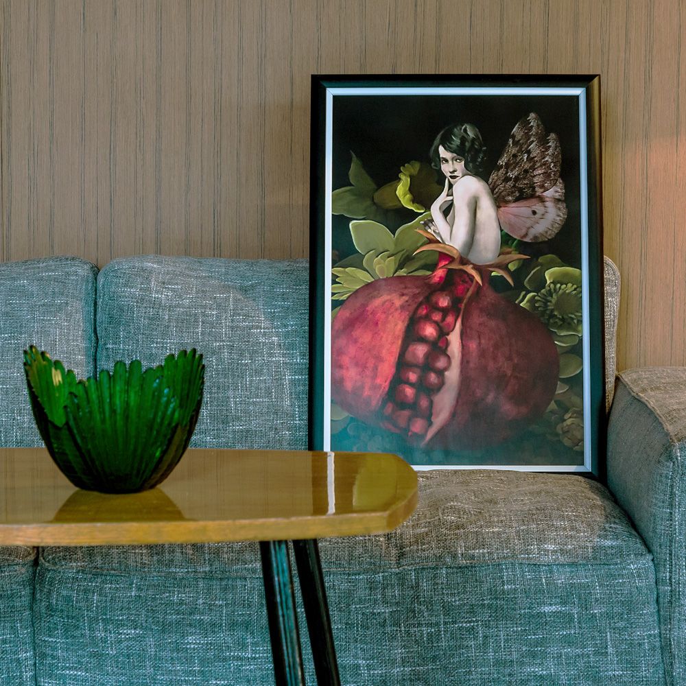 Строгая грациозная рама выигрышно подчеркнет яркие палитры сюрреализма, богатого цветовой энергией и забавной интгригой, столь желанными нашей повседневной домашней атмосфере. Классический цвет рамы составит безупречную гармонию прочим дизайнерским аксессуарам.