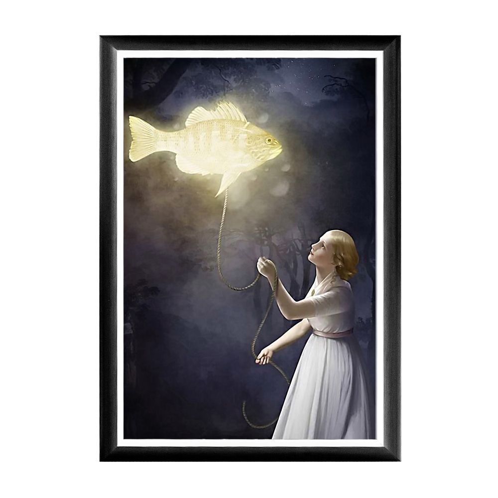 Строгая грациозная рама выигрышно подчеркнет яркие палитры сюрреализма, богатого цветовой энергией и забавной интригой, столь желанными нашей повседневной домашней атмосфере. Классический цвет рамы составит безупречную гармонию прочим дизайнерским аксессуарам.