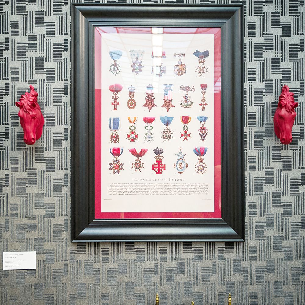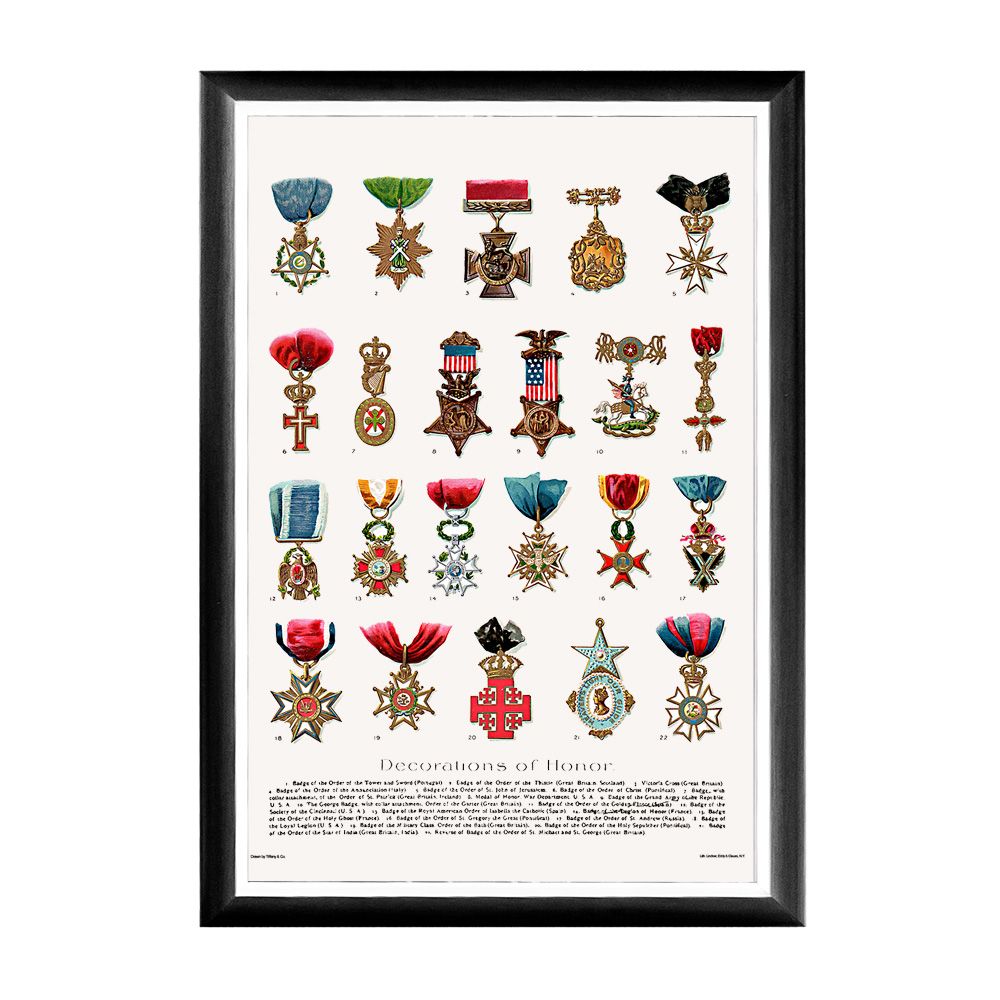 Особой притягательностью обладают постеры, использующие концепцию плаката. Богатые изобразительными деталями и даже текстовой информацией, они подолгу задерживают внимание зрителя. Арт-постер "Искусство награды", в прямом смысле блестящий каскадами мировых драгоценностей, отметит интерьер учтивостью светского этикета, акцентируя неординарный исторический кругозор владельца.
