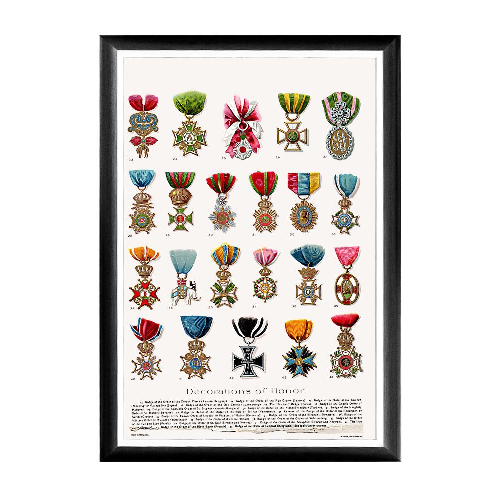 Особой притягательностью обладают постеры, использующие концепцию плаката. Богатые изобразительными деталями и даже текстовой информацией, они подолгу задерживают внимание зрителя. Арт-постер "Искусство награды", в прямом смысле блестящий каскадами мировых драгоценностей, отметит интерьер учтивостью светского этикета, акцентируя неординарный исторический кругозор владельца.