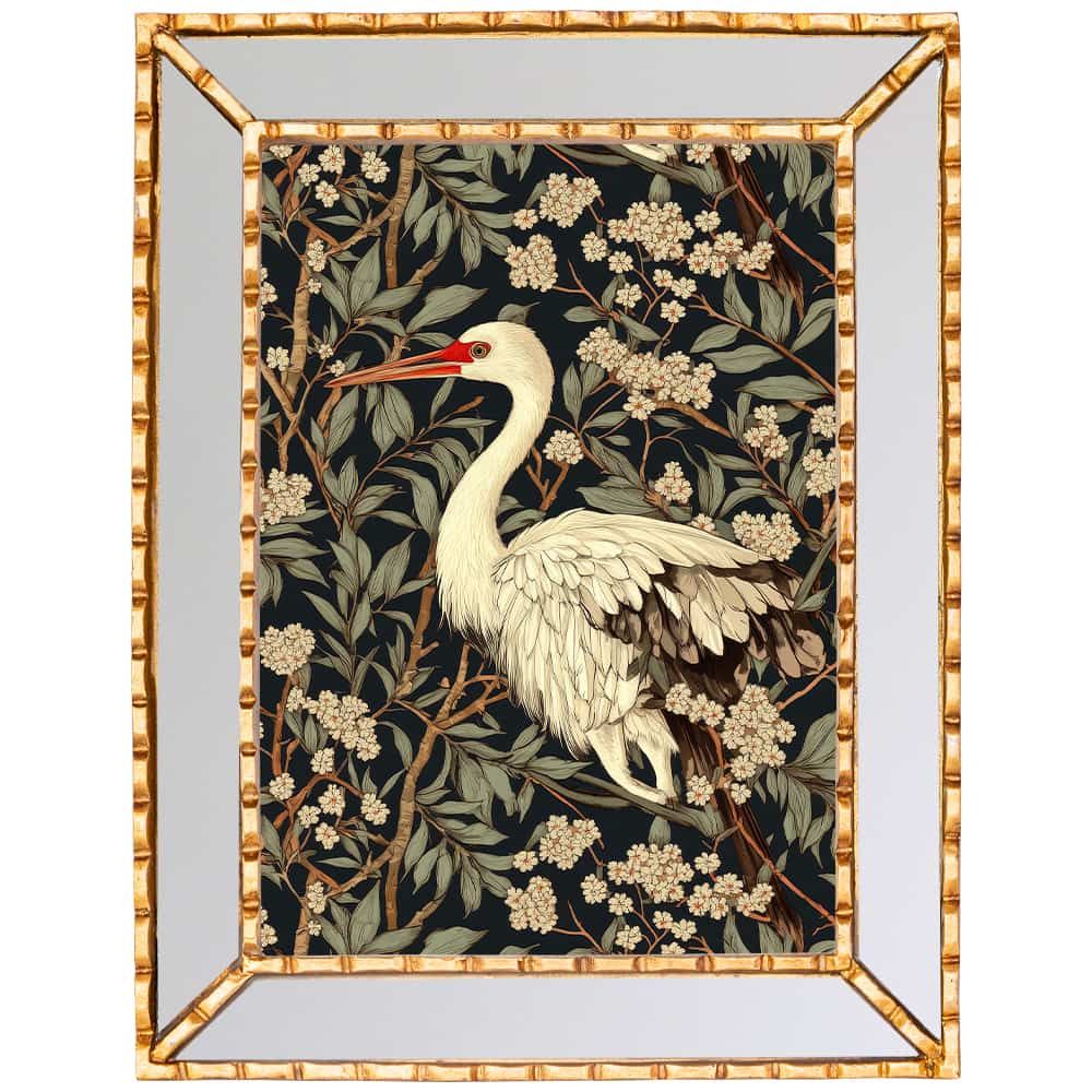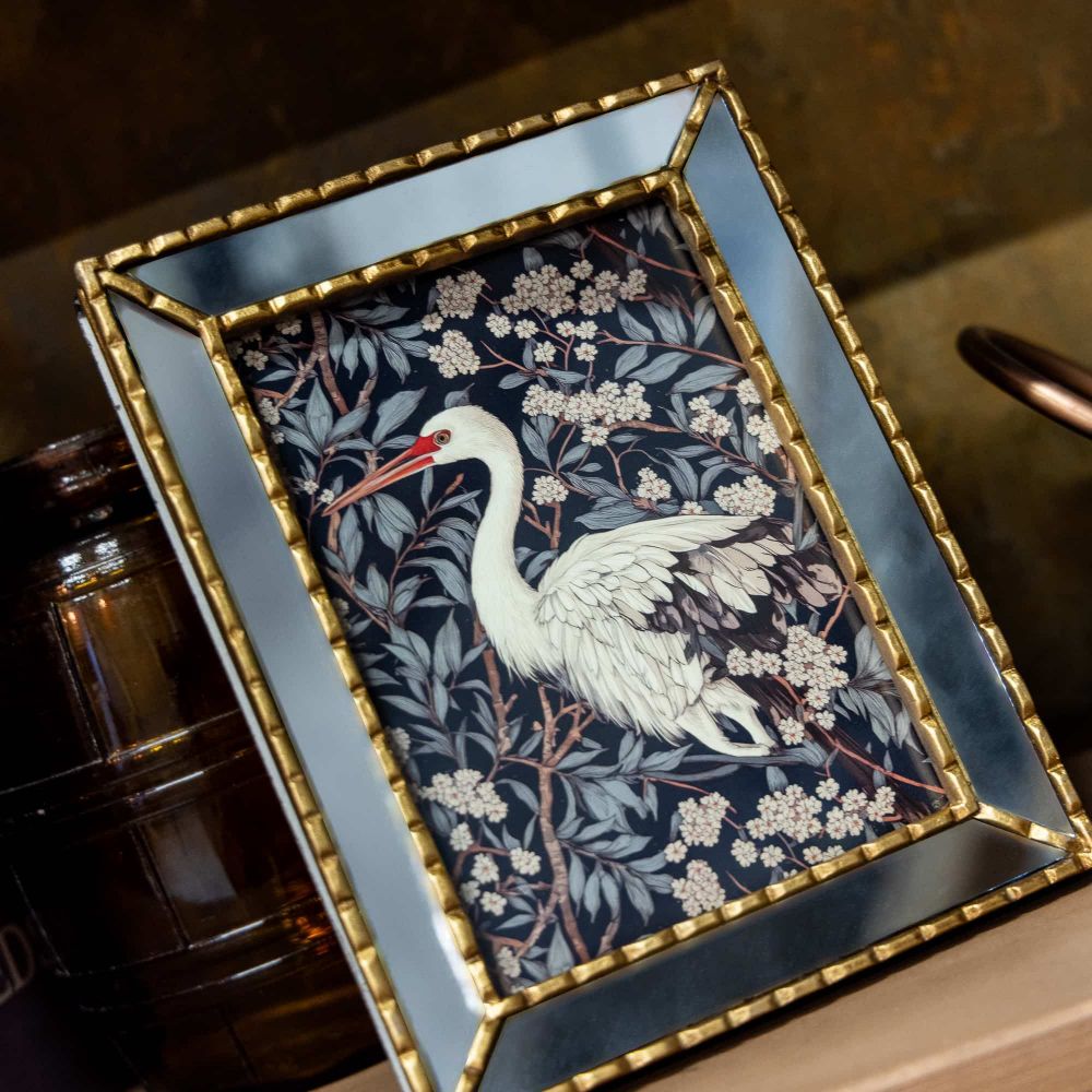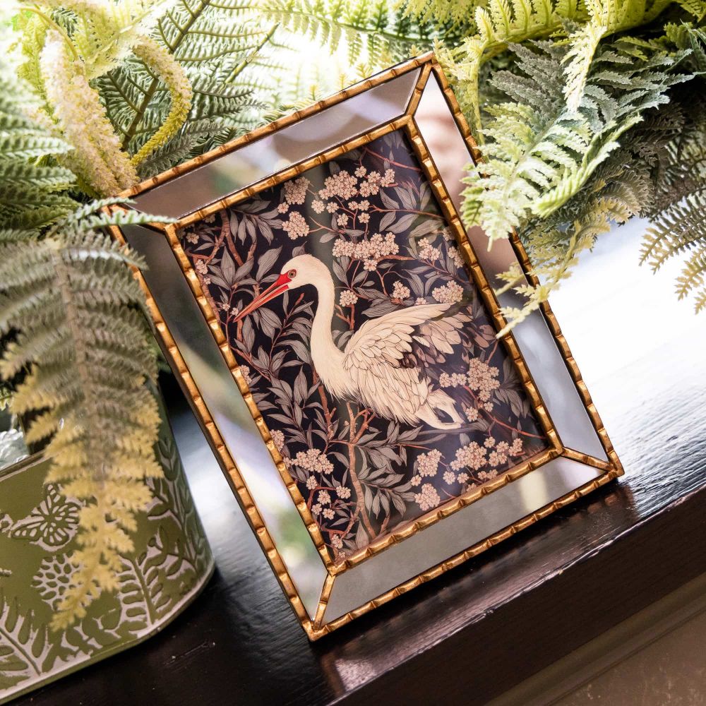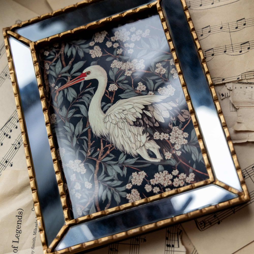 Зеркальная рама превращает картину 13×18 см «Белая цапля» в сияющую драгоценность, где величественная цапля, застывшая среди зелени и цветов, обретает новое измерение. Полиуретановые вставки цвета матового античного золота обрамляют раму по периметру, добавляя ей изысканности. Прочное стекло надёжно защищает изображение от солнечных лучей, позволяя краскам играть в полную силу.