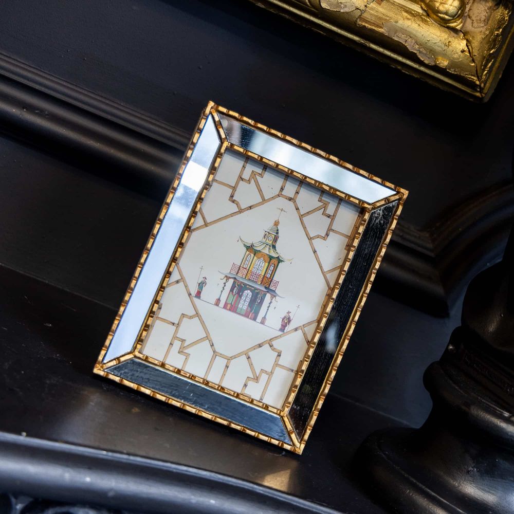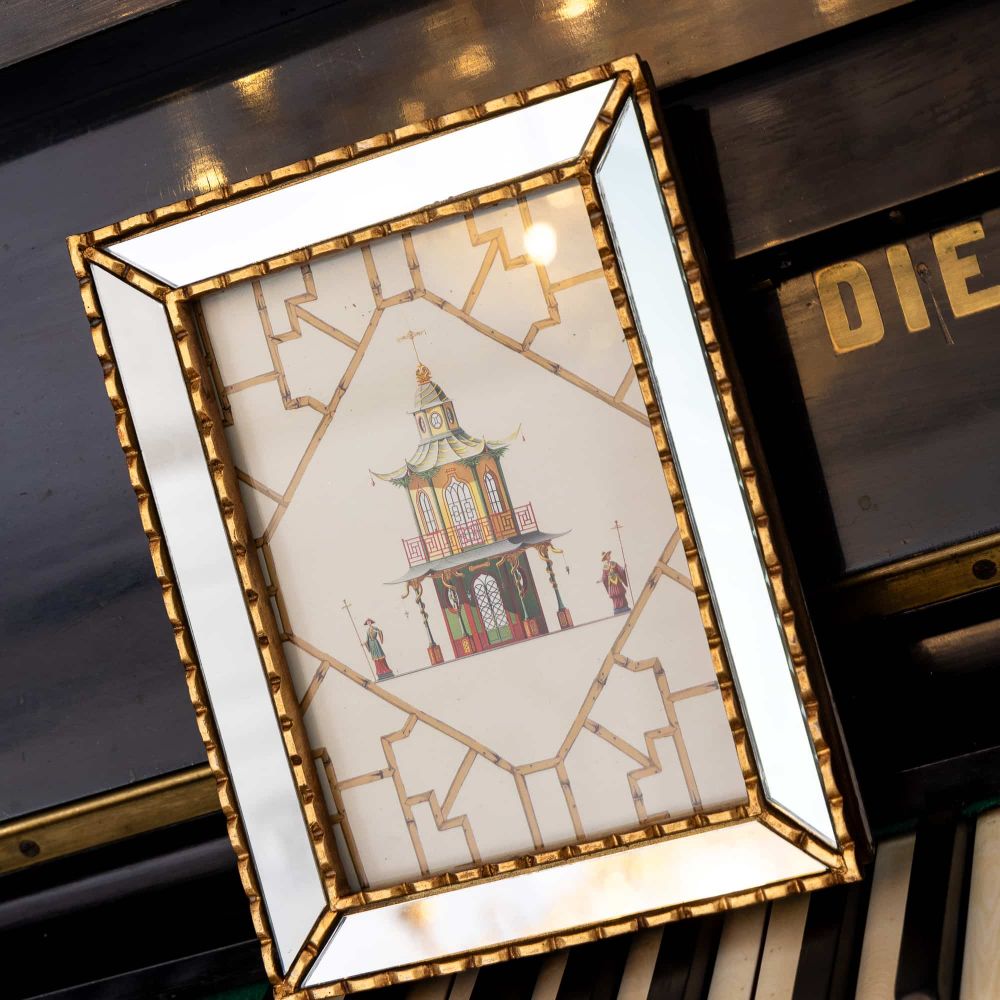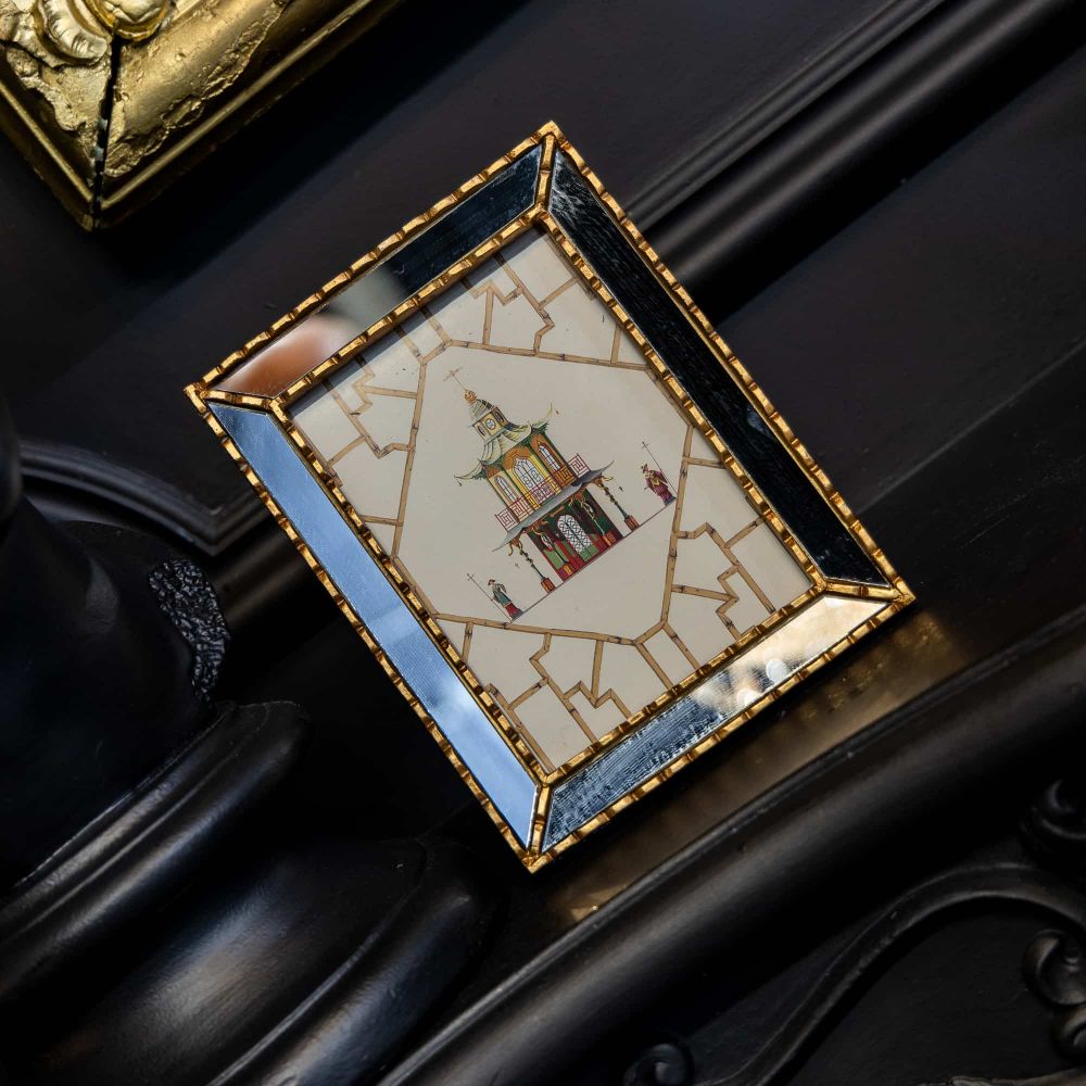 Картина «Мечты о Поднебесной» версия 3 — это не просто декоративное панно. Это ваш личный портал в сказку, заключенный в изящную зеркальную раму. Изображение старинной китайской беседки со стражниками, резными дверями и изогнутыми крышами выполнено в стиле шинуазри — популярном направлении, соединяющем европейское изящество с восточной экзотикой. Картина сразу притягивает взгляд, но её истинная магия раскрывается позже, когда вы замечаете, как зеркальные грани рамы отражают пространство вокруг, создавая иллюзию продолжения этого волшебного мира в вашем интерьере.