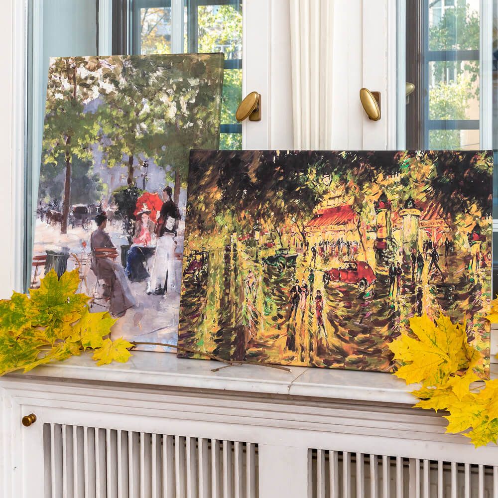Решение — картина «Бульвар в Париже» Константина Коровина, выполненная по технологии галерейной натяжки.