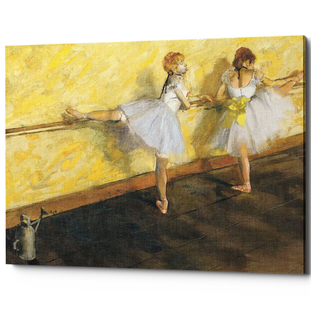 Решение — репродукция знаменитой картины Эдгара Дега «Балерины в барре», выполненная в престижной технике галерейной натяжки.