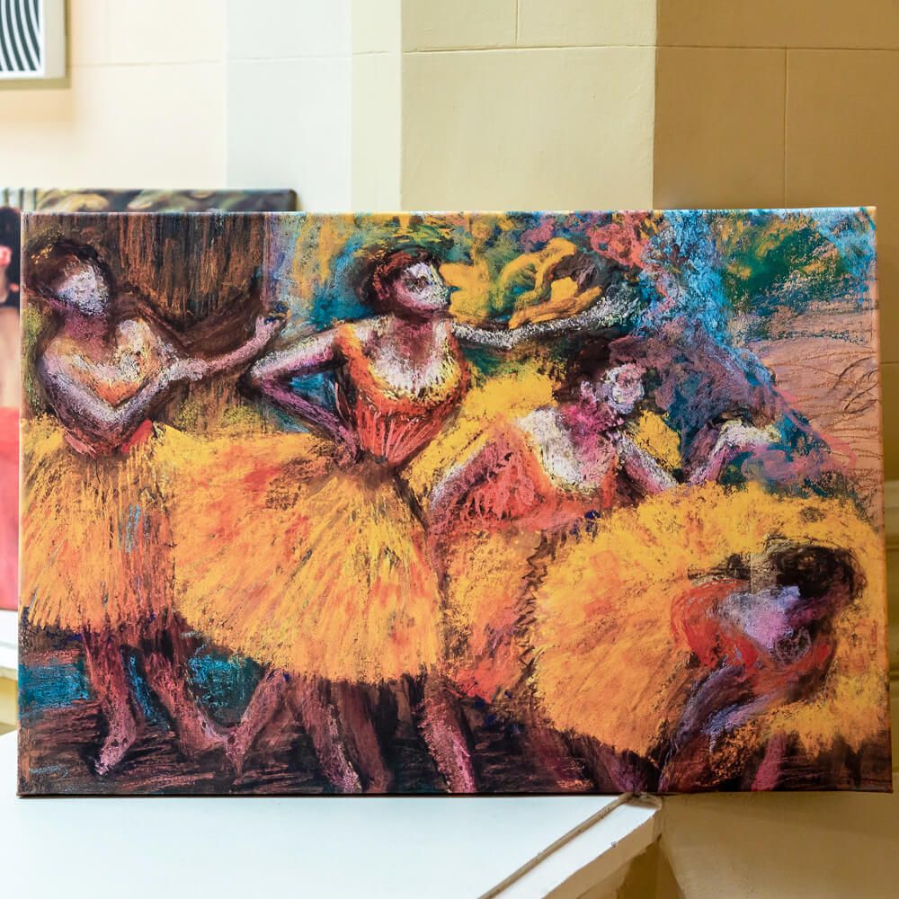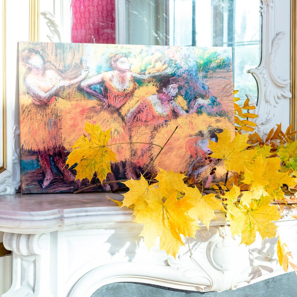 Наполняет пространство настроением и энергией: Картина привносит в комнату атмосферу театра, грации и скрытого движения, добавляя интерьеру «яркость, свежесть и атмосферную легкость» импрессионизма.
