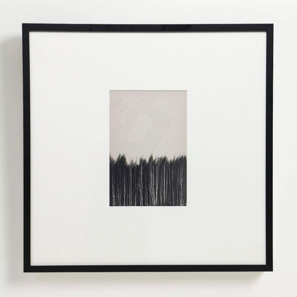 Строгая черная рама — идеальный контраст. Глубокая черная деревянная рама служит современным обрамлением для винтажного изображения. Она подчеркивает ценность «находки», добавляет композиции графической строгости и делает ее законченной, готовой к размещению в галерейном стиле.