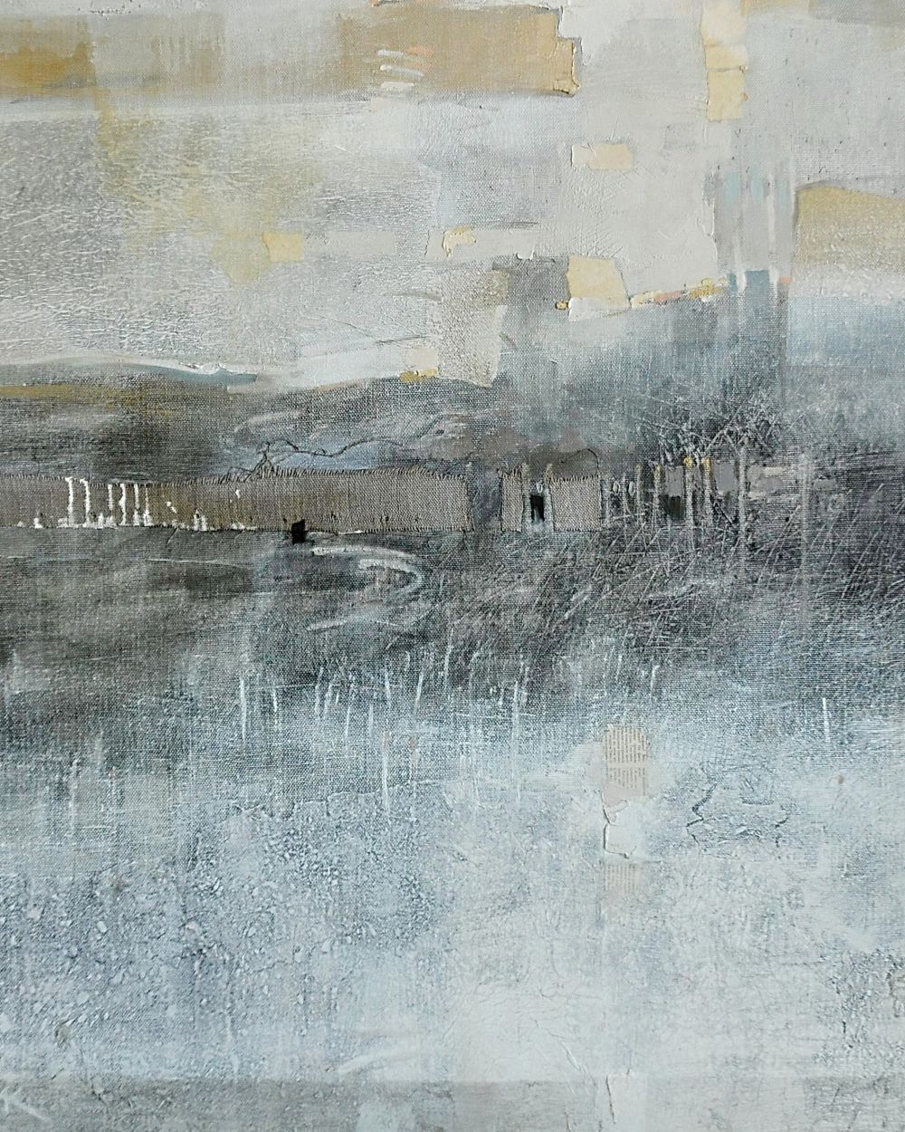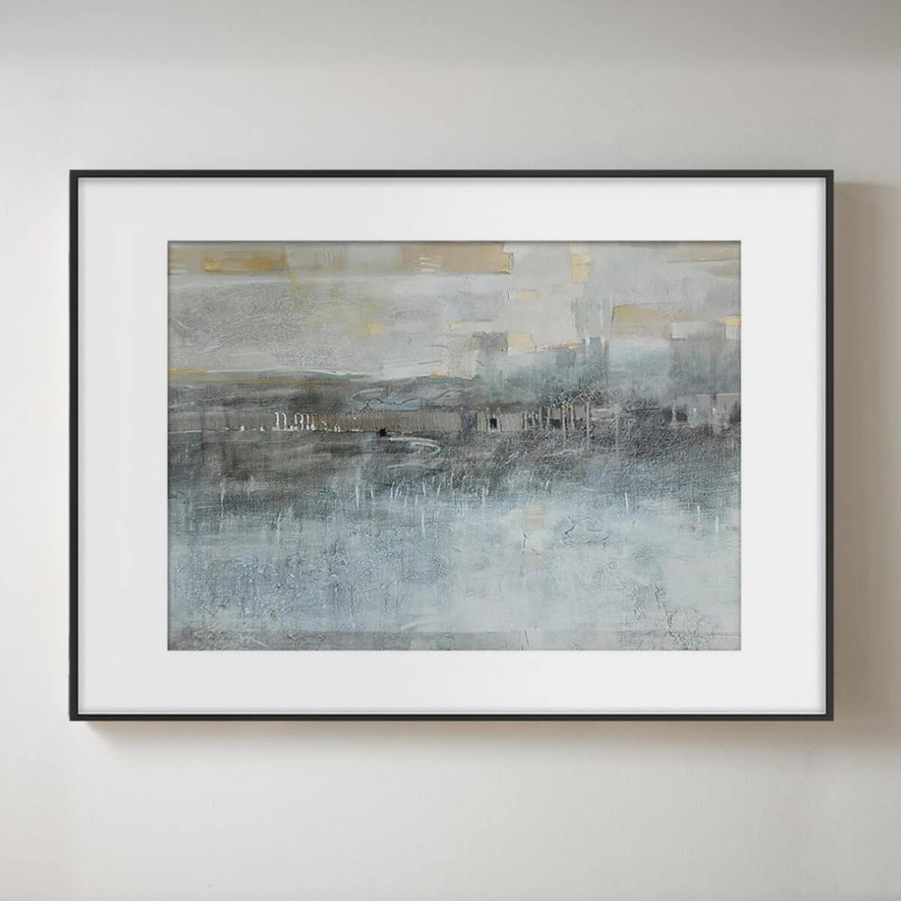 Жикле «Исландия» — это и есть тот самый идеальный акцент для делового пространства. Это не просто пейзаж, а художественная интерпретация суровой, величественной красоты северной природы. Холодная цветовая палитра глубокого синего, серого и сдержанного желтого переносит в атмосферу заснеженного городка, окутанного туманом. В этой работе нет ярких, отвлекающих красок — только размеренность, глубина и мощная, умиротворяющая энергетика. Такая картина настраивает на рабочий лад, отсекая ненужный шум и помогая сосредоточиться на главном.