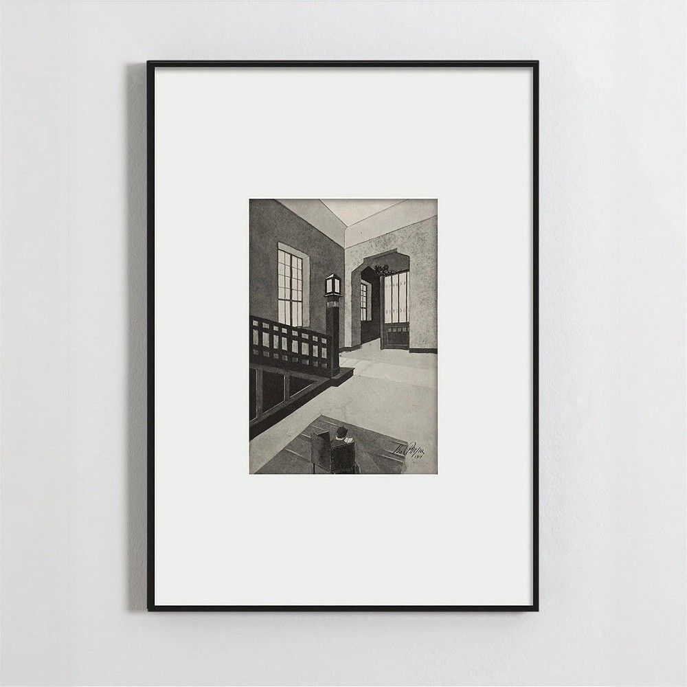 Постер «Halle» — это редкая возможность разместить на своей стене исторический документ, превращенный в произведение искусства. Это репродукция эскиза из книги «Мотивы отделки комнат» 1915 года, выполненного петербургским архитектором Владимиром Готлибовичем Стори. Под изображением с дубовой лестницей и арочным проемом сохранена заметка автора: «Часть среднего зала или Halle». Это не просто красивая картинка, а законченный архитектурный замысел, запечатленный в элегантном черно-белом графическом стиле. Такой постер добавляет интерьеру слоистости: это и винтаж, и современный лофт, и дань уважения профессионализму и истории.
