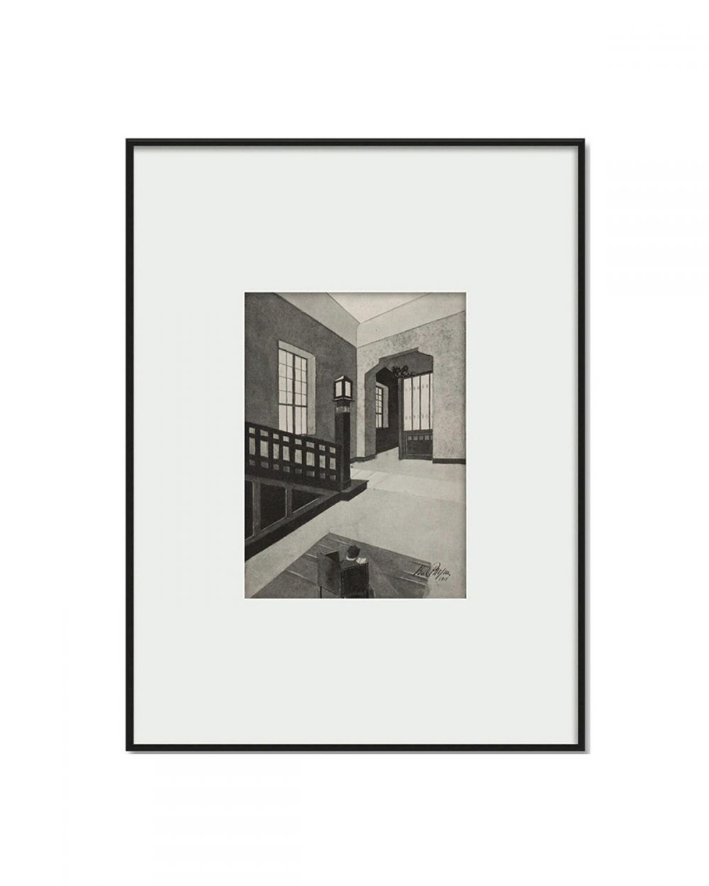 Изображение напечатано на плотной фотобумаге и оформлено в классическую черную деревянную раму, которая подчеркивает графическую строгость эскиза. Наличие паспарту (декоративной подложки) создает необходимый «воздух» и глубину, характерные для галерейного оформления. Органическое стекло надежно защищает работу от выцветания. Постер полностью готов к монтажу: на задней стороне уже установлено удобное D-образное крепление для легкого и ровного вертикального размещения на стене.