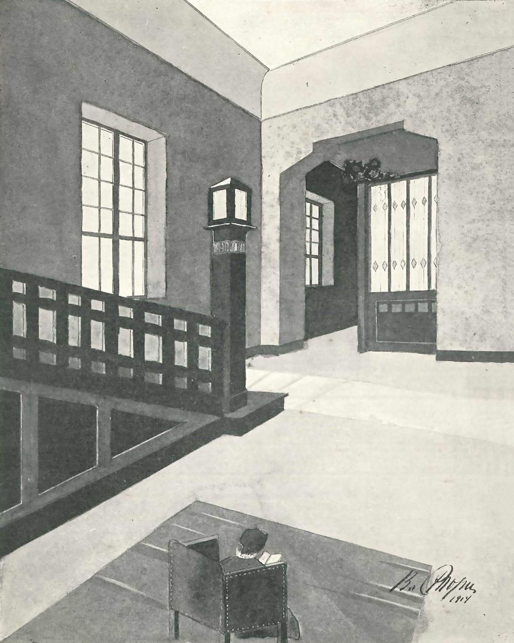 Автор и источник: Репродукция эскиза архитектора В. Г. Стори из книги «Мотивы отделки комнат» (1915 г.).