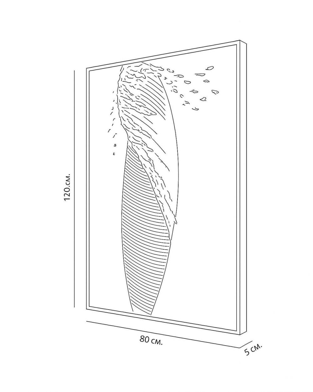 Акриловая шпаклевка – прочный, долговечный материал, который не осыпается и сохраняет форму. Холст – надежная основа. Черная деревянная рама подчеркивает графичность и служит стильным обрамлением. D-образное крепление позволяет легко и надежно повесить картину на стену. Возможность вертикального и горизонтального монтажа дает свободу в выборе композиции.