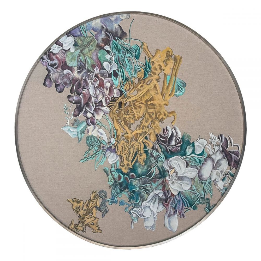 Круглая картина с росписью по ткани «Икеда» воплощает эту красоту с редкой утонченностью. Она выполнена в ботаническом стиле в технике гунби – древней китайской живописи, отличающейся тщательной проработкой деталей, четкостью линий и изысканной цветовой гаммой. Каждый лепесток, каждая жилка на листе, каждый изгиб стебля выписаны с невероятной тщательностью и любовью.