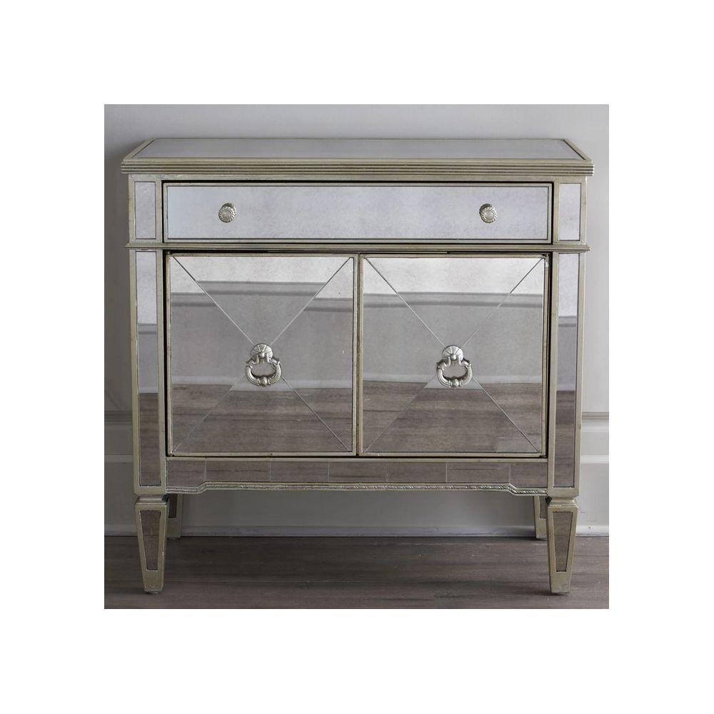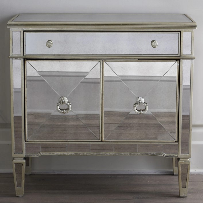 Зеркальная тумба “Сарасота” — элегантный и функциональный элемент интерьера в стиле ар-деко с фурнитурой под серебро. Эта утончённая тумба добавит света и изысканности вашему пространству, став ярким акцентом в спальне, прихожей или гостиной. Изящный дизайн сочетает черты классики и современного гламура. Верхний выдвижной ящик украшен двумя декоративными ручками, а два распашных зеркальных фасада — кольцевыми ручками в виде “львиной головы”. Фасады дополнены гравировкой в виде ромбов, придающей изделию особый шарм. Зеркальные вставки украшают как фасад, так и ножки тумбы. Благодаря зеркальным поверхностям тумба визуально расширяет пространство и одновременно служит удобным местом для хранения. Идеальный выбор для ценителей нестандартных интерьерных решений и утончённого стиля.