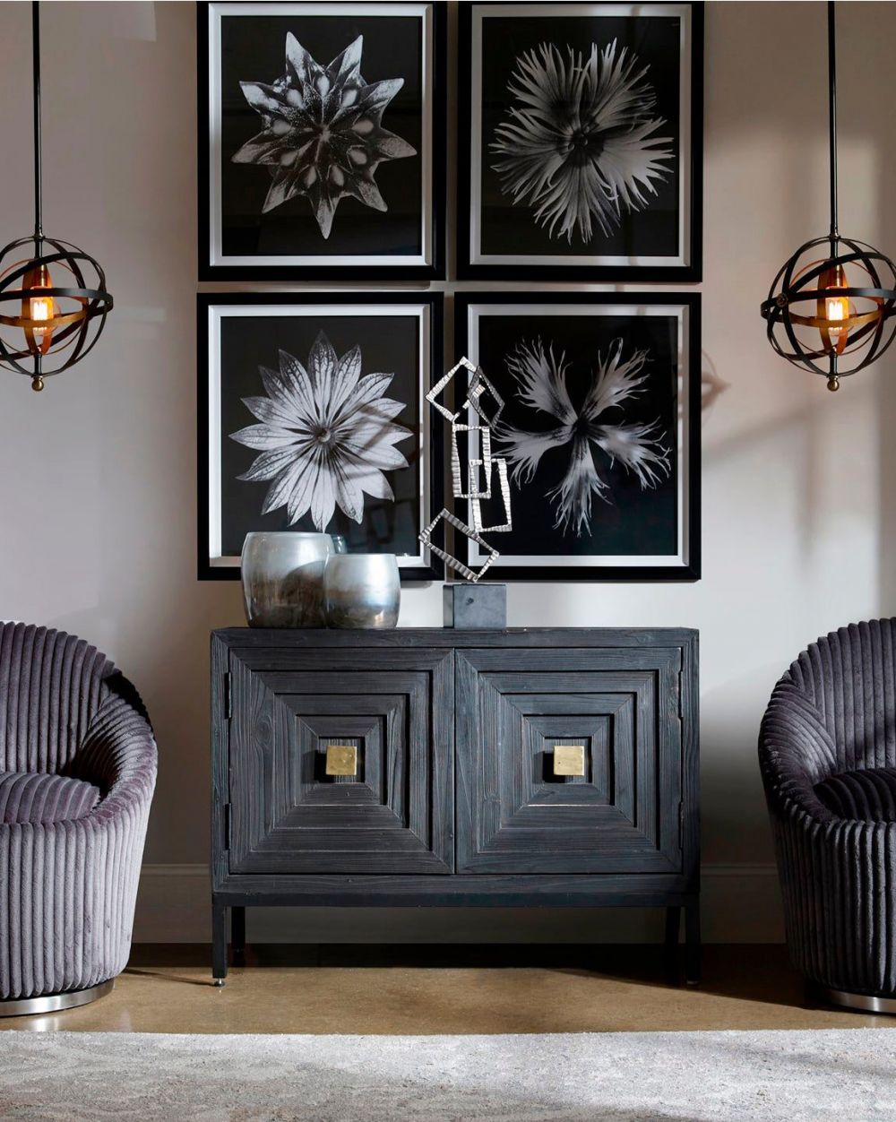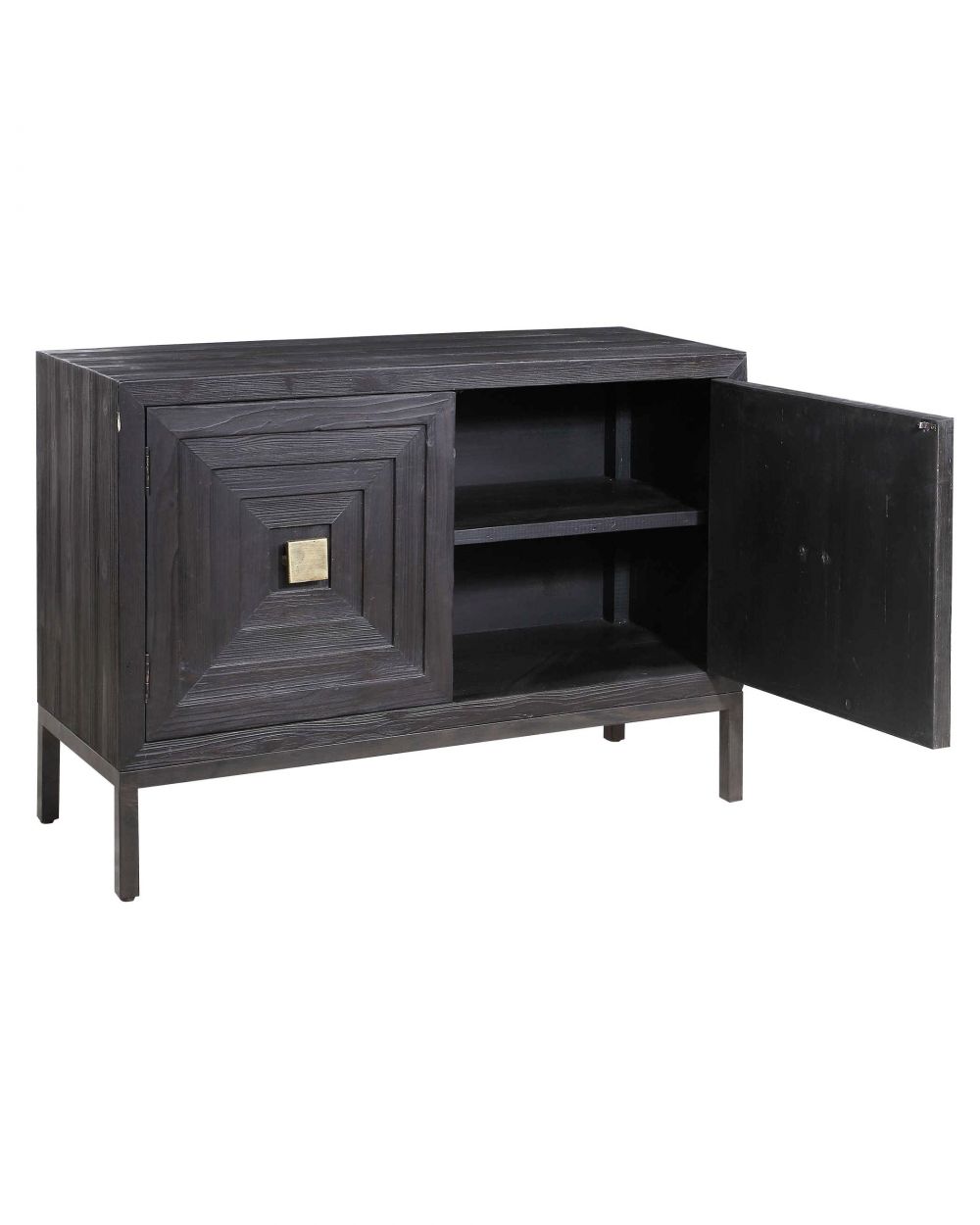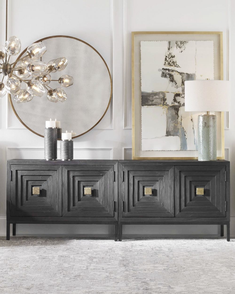 Чёрная тумба “Сальери” — это идеальное сочетание функциональности и дизайнерской выразительности. Выполненная из дерева с текстурированной поверхностью. Глубокий чёрный придаёт изделию строгость и визуальную глубину. Фасад тумбы оформлен в виде концентрических квадратов, создающих эффект объёма и динамики. Центр каждой дверцы украшают квадратные металлические ручки — акцентные детали в тёплом оттенке латуни. Лаконичные ножки средней высоты добавляют лёгкости и устойчивости. Она органично впишется в интерьеры в стиле современный, лофт, минимализм и арт-деко, становясь эффектной акцентной деталью любого пространства.