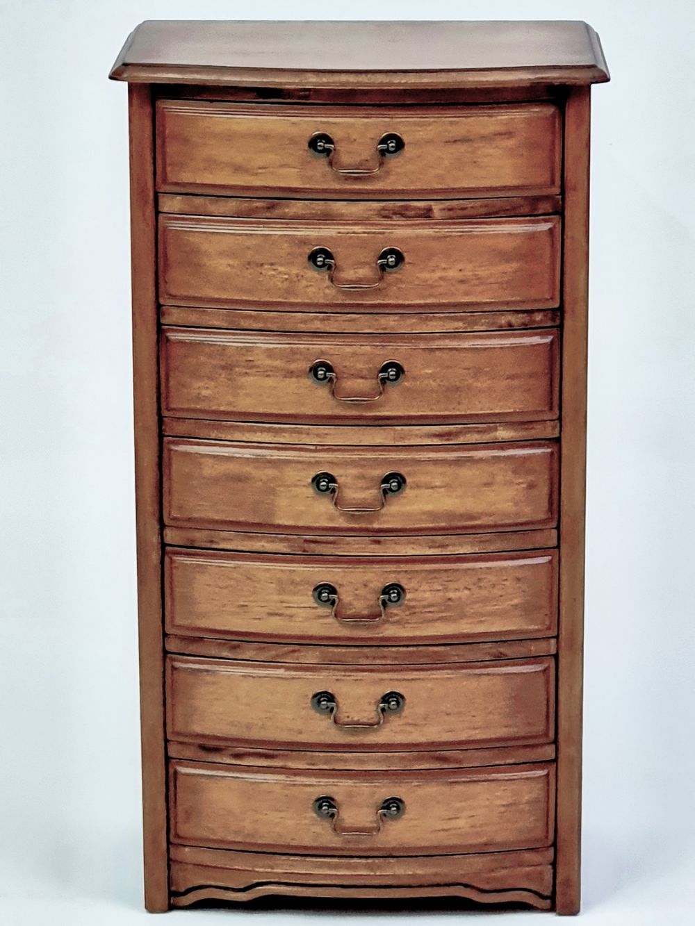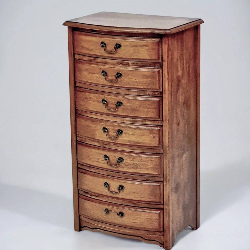 Этот узкий комод с семью ящиками цвета итальянский орех – идеальный выбор для тех, кто ищет максимально вместительное, но при этом компактное решение для хранения. Его винтажный шарм, продуманная организация и небольшие размеры сделают его настоящим спасением в малогабаритной квартире, дарящим ощущение порядка и гармонии каждый день. Добавьте в свой дом компактность и порядок – выберите этот комод.