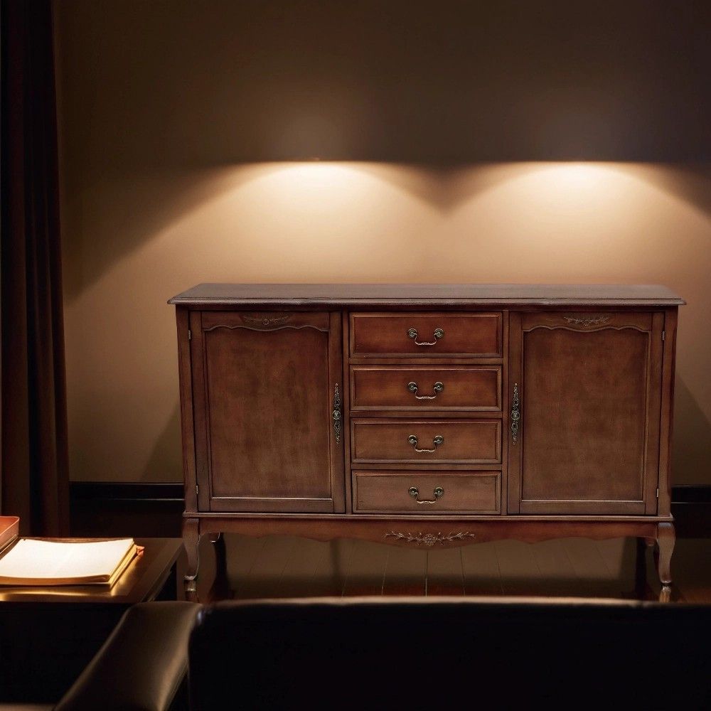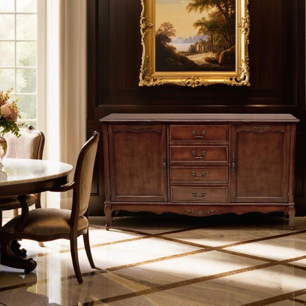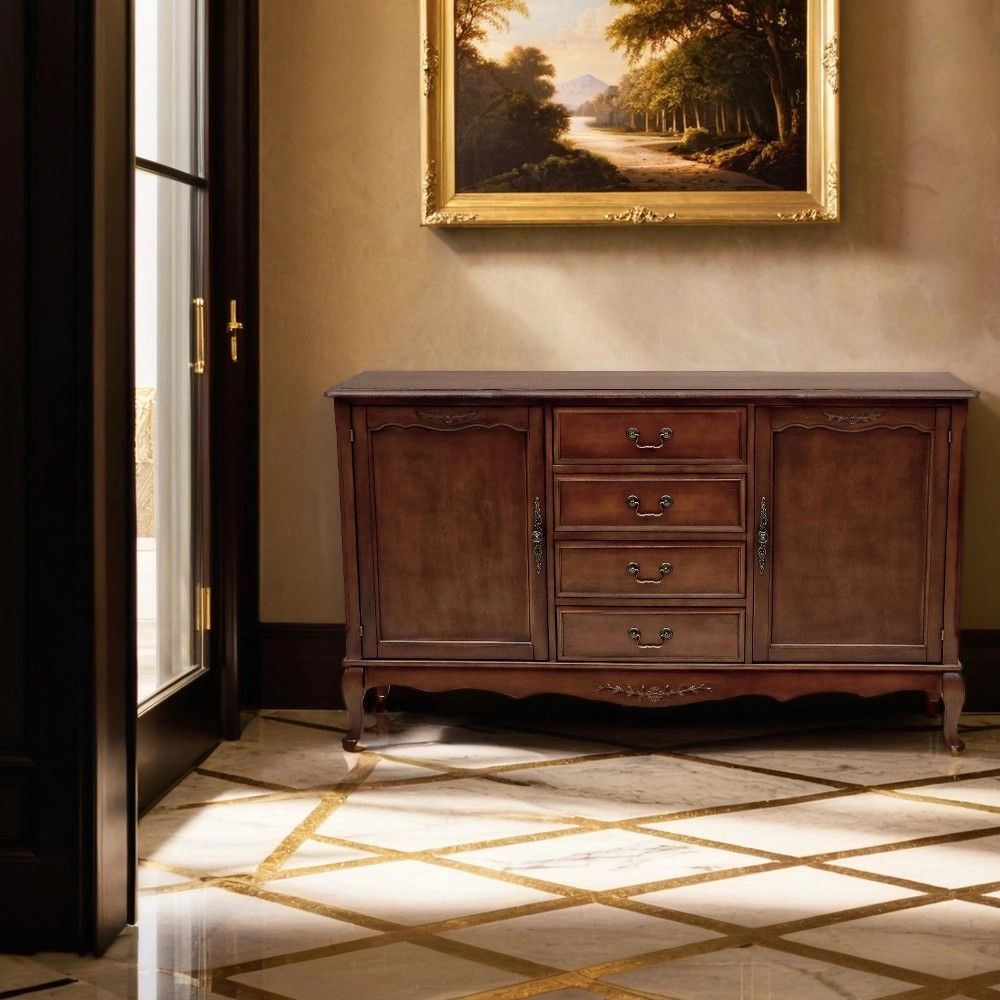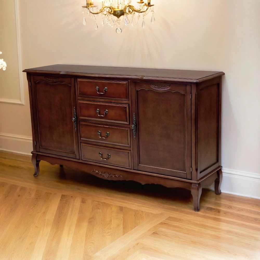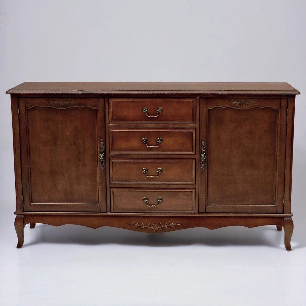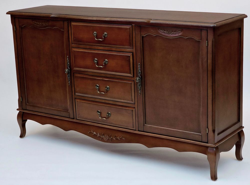 Этот комод в традиционном стиле создан для тех, кто ценит продуманную организацию пространства. Его конструкция идеально сбалансирована: центральная часть с четырьмя выдвижными ящиками предназначена для хранения мелких и средних предметов, которые должны быть всегда под рукой. Боковые секции, закрытые распашными дверями, идеально подходят для более крупных и объемных вещей – пледов, подушек, одежды или посуды.