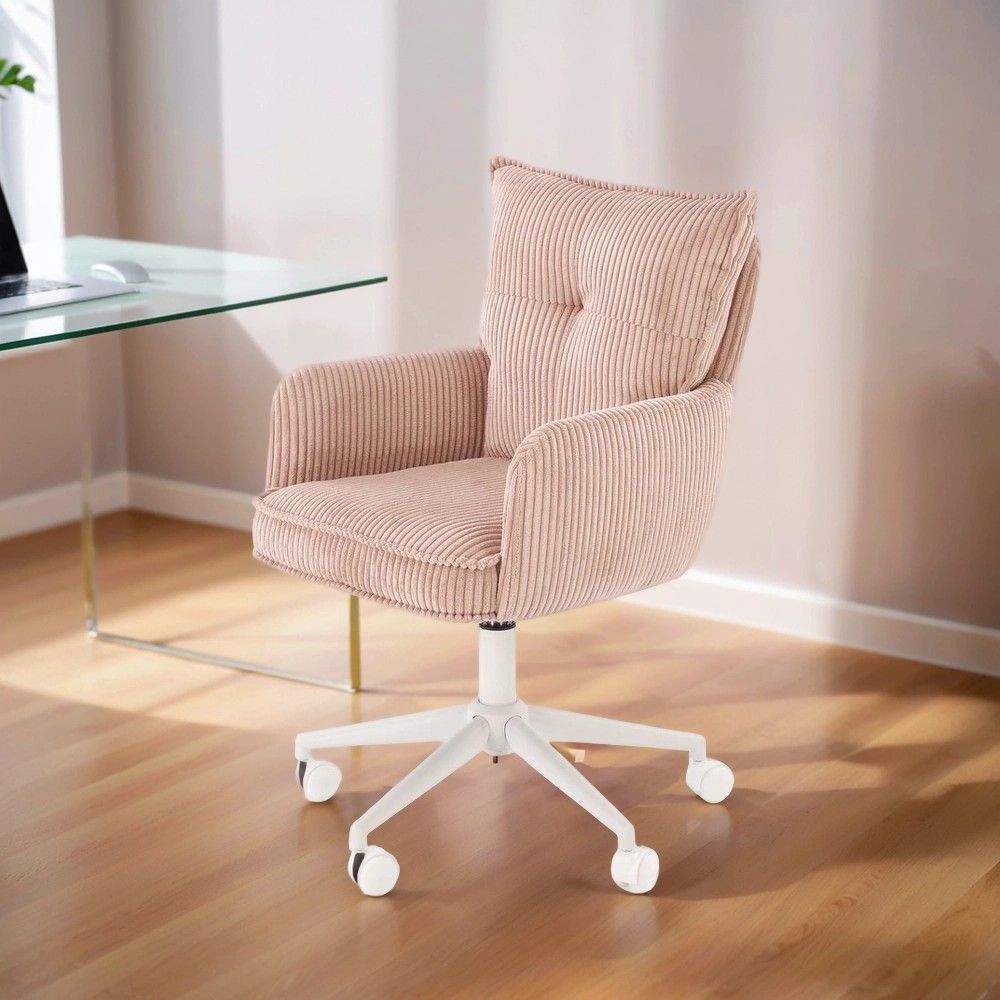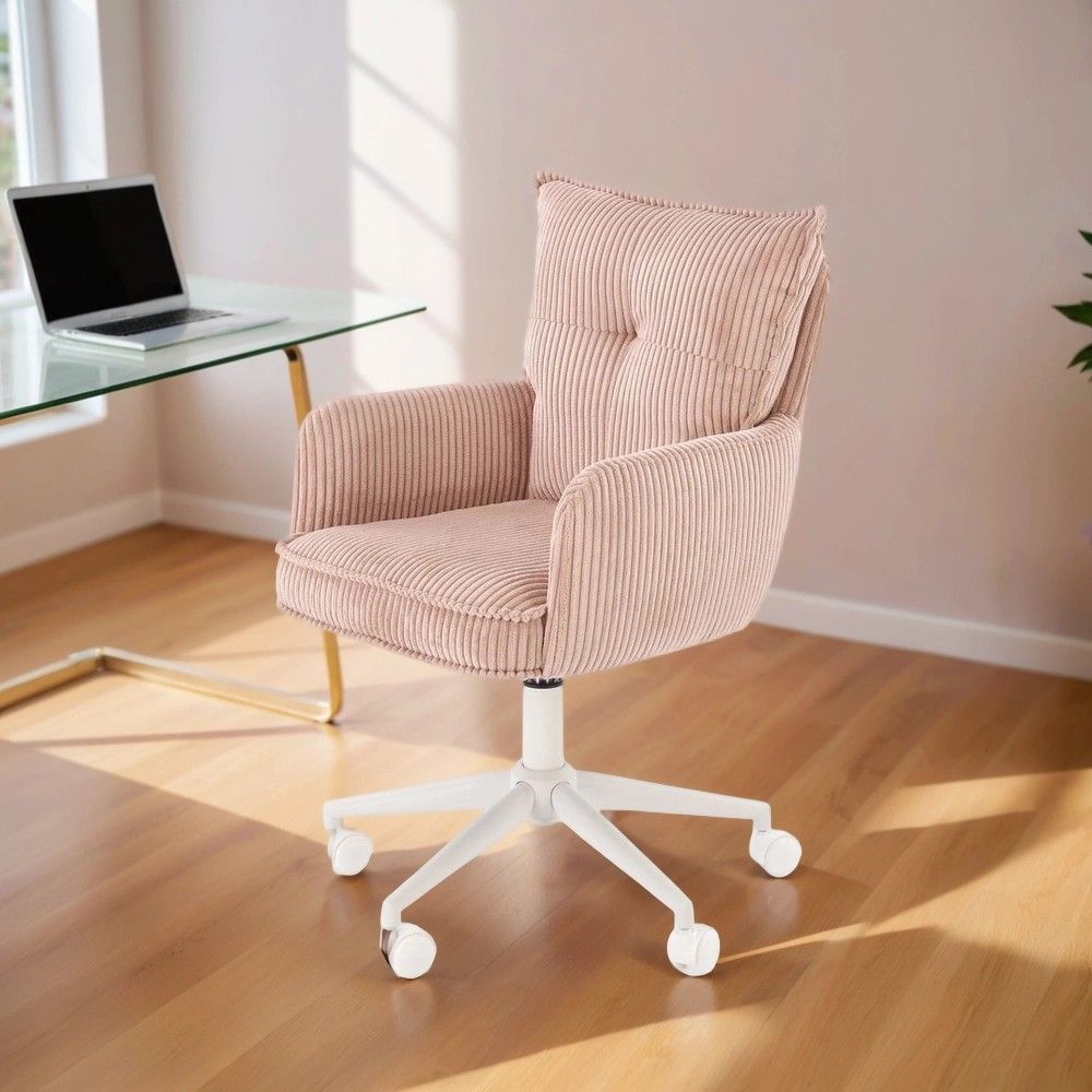 Изготовленное из ткани, кресло предлагает мягкость и удобство, а светло-розовый цвет добавляет свежести и уникальности, делая его идеальным выбором для создания уютной и приятной атмосферы в офисе или домашнем кабинете.