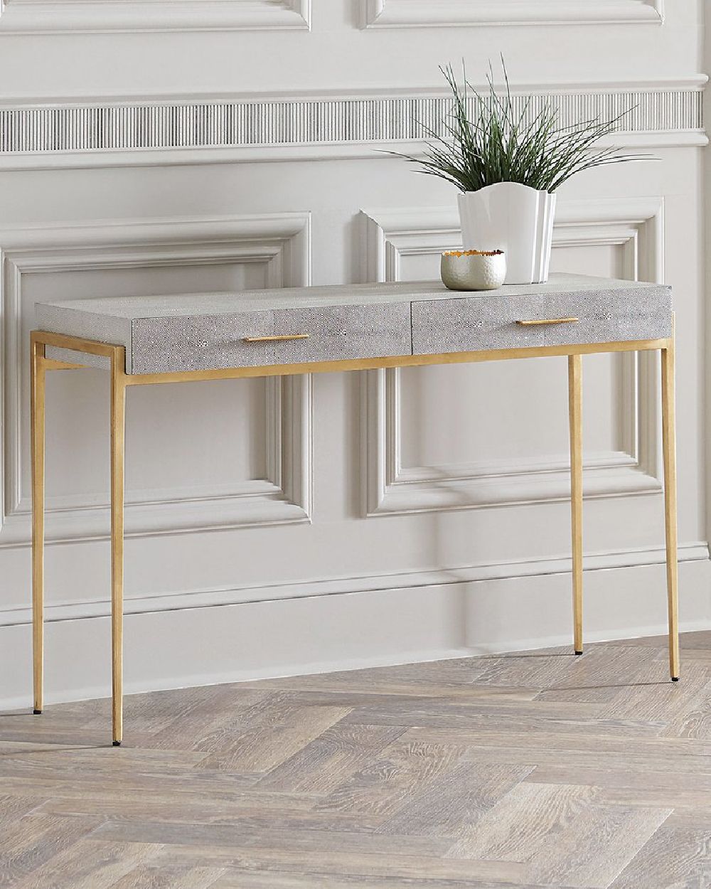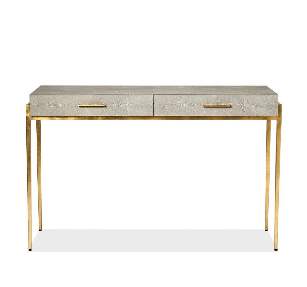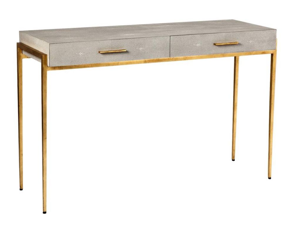 Консоль-стол бежевая “Монтгомери” – это элегантная и стильная мебель, которая сочетает в себе современный и классический дизайн. Этот стол обязательно привлечет внимание благодаря своей внешности и исполнению. Столешница изготовлена из материала, который точно воспроизводит текстуру бежевой шагреневой кожи. Этот дизайнерский элемент придает столу уникальный и роскошный вид. Нежный бежевый цвет позволит легко интегрировать эту консоль в любой цветовой гамме вашего дома. Кроме своей привлекательности, этот письменный стол также обладает функциональностью и удобством использования. Он оборудован достаточным пространством для размещения всех ваших рабочих принадлежностей и необходимых вещей. Таким образом, консоль-стол бежевая “Монтгомери” является идеальным решением для тех, кто ищет не только стильную, но и практичную мебель. Ножки стола выполнены в элегантном золотом цвете, придающем ему особую изысканность.