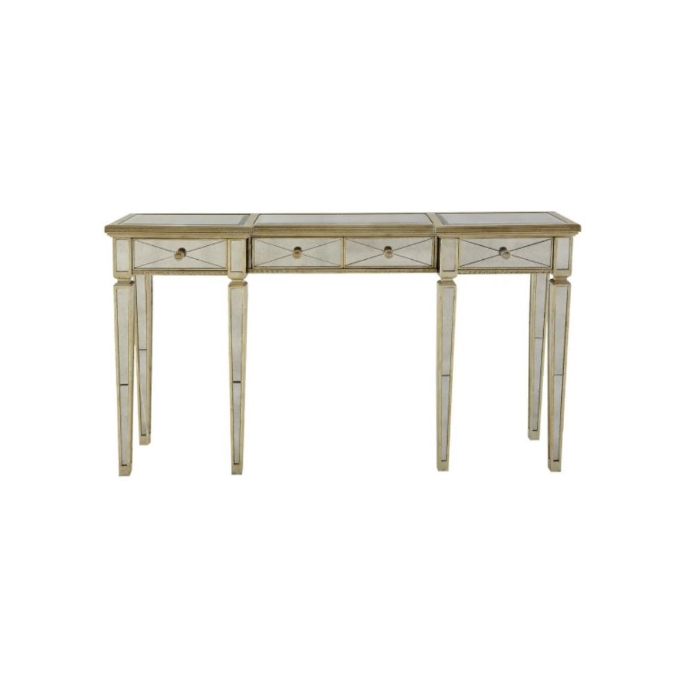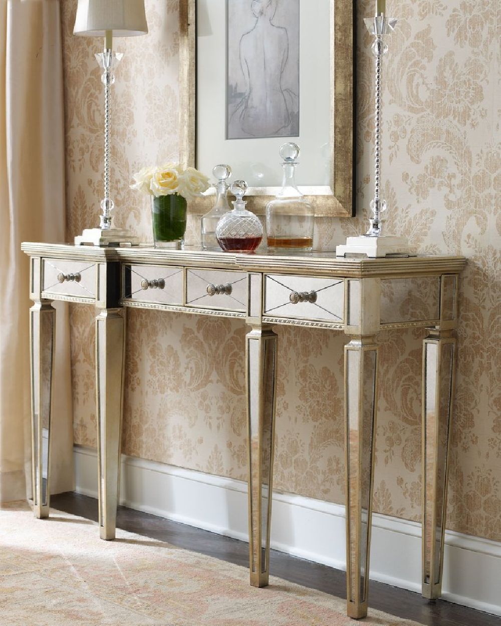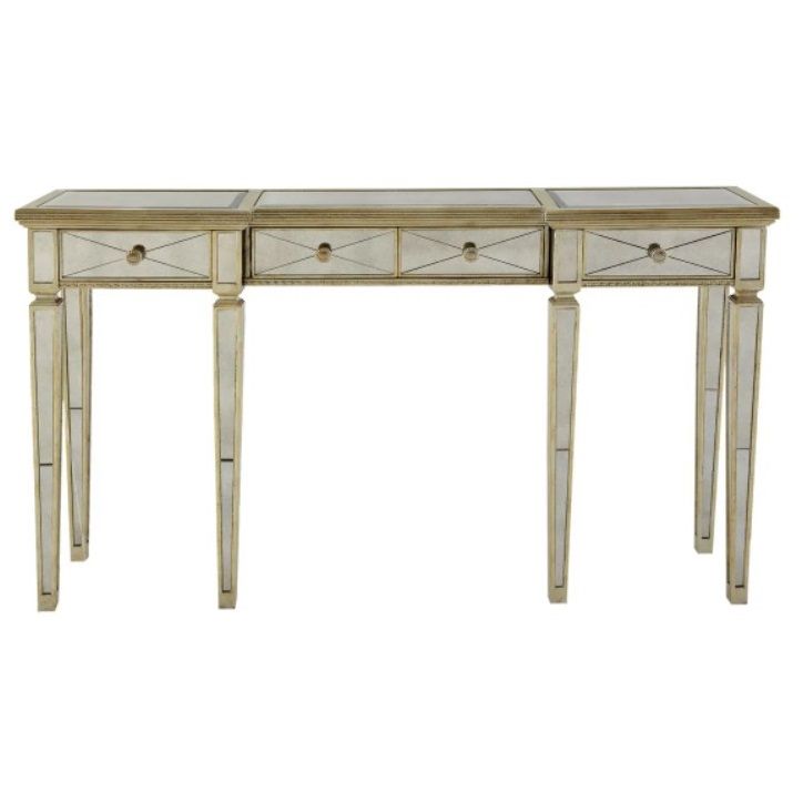 Зеркальная консоль “Гайден” – это стильный и современный предмет мебели, который станет отличным дополнением для вашего интерьера. Она привлекает своим изысканным дизайном и отделкой в цвете шампань, которая выглядит великолепно и добавляет роскоши в любое помещение. Зеркальная консоль “Гайден” имеет три просторных выдвижных ящика, которые обеспечивают много места для хранения различных предметов. Вы можете легко и удобно организовать свои вещи и сохранить порядок в своей комнате. Ящики снабжены стильными металлическими ручками, которые придают дополнительную изящность этой консоли. Одной из наиболее примечательных особенностей консоли “Гайден” является ее зеркальная столешница. Она отражает свет и создает чувство пространства, придают комнате больше света и яркости. Зеркало также отлично сочетается с отделкой и придает консоли элегантность и шарм. Столешница консоли “Гайден” достаточно просторная, чтобы разместить настольную лампу, фоторамки, цветы или другие декоративные предметы. Вы можете использовать эту консоль как декоративный элемент в вашей гостиной, прихожей или спальне. Ее универсальность позволяет легко вписать ее в любой интерьер и стиль.